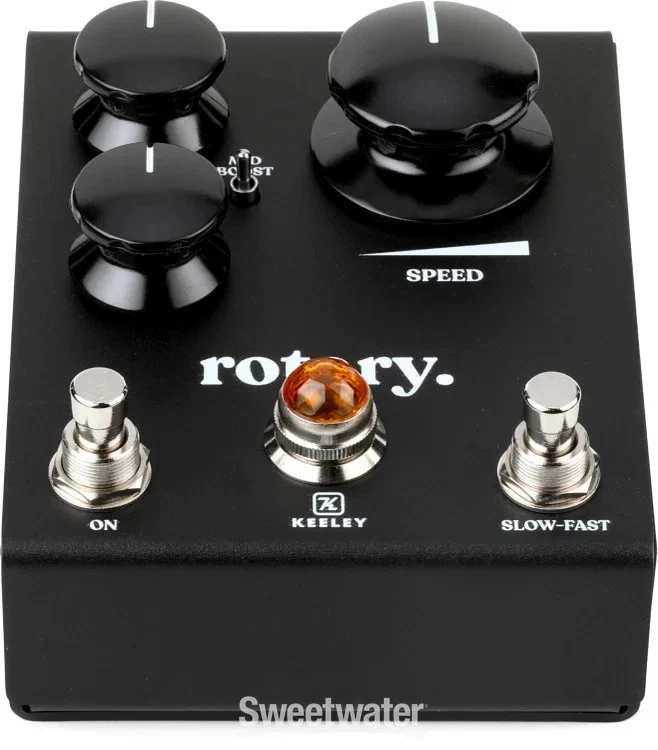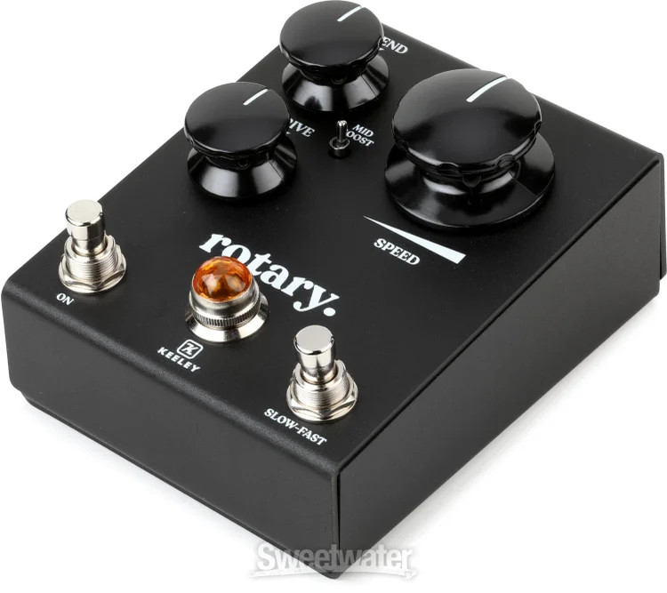 Swirling Tone Without the Heavy Lift Searching for a way to re-create the syrupy swirl and irresistible warmth of a classic rotary speaker? Then stomp on the Keeley Rotary. This aptly named guitar pedal leverages cutting-edge circuitry to deliver a full range of Doppler-esque textures, with true stereo operation to ensure impressively immersive results. This stellar stompbox boasts a straightforward layout with Blend, Drive, and Mid Boost controls, enabling you to dial in everything from a subtle seasick warble to a full-on saturated sonic whirlwind, with three different EQ curves for a perfectly tailored sound. You also get a Slow-Fast footswitch, bolstered by a large Speed knob, providing you with fine-tuned control over the simulated speaker’s rotation. Moreover, the Rotary lets you easily toggle between True and Buffered Bypass modes, facilitating seamless integration with the rest of your rig. Finally, you get an optional pulsing LED, adding a touch of Sweetwater is an Authorized Keeley Dealer Genuine New Item Sweetwater's 2-year warranty* Keeley Rotary Simulator Pedal Stereo Rotary Speaker Simulator Guitar Pedal with Blend, Drive, Speed, Mid Boost, and Slow-Fast Controls Swirling Tone Without the Heavy Lift Searching for a way to re-create the syrupy swirl and irresistible warmth of a classic rotary speaker? Then stomp on the Keeley Rotary. This aptly named guitar pedal leverages cutting-edge circuitry to deliver a full range of Doppler-esque textures, with true stereo operation to ensure impressively immersive results. This stellar stompbox boasts a straightforward layout with Blend, Drive, and Mid Boost controls, enabling you to dial in everything from a subtle seasick warble to a full-on saturated sonic whirlwind, with three different EQ curves for a perfectly tailored sound. You also get a Slow-Fast footswitch, bolstered by a large Speed knob, providing you with fine-tuned control over the simulated speaker’s rotation. Moreover, the Rotary lets you easily toggle between True and Buffered Bypass modes, facilitating seamless integration with the rest of your rig. Finally, you get an optional pulsing LED, adding a touch of visual flair to your performance. Melding vintage-inspired modulation with contemporary precision, the Rotary captures the soul of a classic rotary speaker — no heavy cab required. Spin your tone with exacting control When you’re craving classic rotary speaker sounds, the Rotary pedal certainly delivers, combining rich, modulated textures with authentic-sounding, tube-style overdrive. That said, this stompbox’s streamlined layout gives you way more control than you would have with a physical rotating speaker. The Blend knob lets you dial in the perfect mix between your dry and wet signals, whether you’re aiming for subtle coloration or absolute cacophony. The Drive knob infuses your signal with glorious harmonic saturation, adding depth and character to your tone. Finally, the Mid Boost switch provides you with three different EQ curves to fatten up the modulation effect. The magic of rotary motion at your feet Our favorite aspect of the Keeley Rotary here at Sweetwater is how much control you get over the pedal’s simulated rotary motion. To start, you get a Slow-Fast switch, enabling you to select between two distinct rotation speeds for slow chorus-like modulation or a fast, tremolo-esque sound. You can also instantly slow down the rotation for an attention-grabbing braking effect, adding a dynamic touch to your performance. Additionally, the Rotary lets you adjust the speed transition between slow and fast for smooth or dramatic soundscapes. Lastly, the large Speed knob enables you to instantly control the rotation speed for intuitive, on-the-fly adjustments. Keeley Rotary Features: A guitar pedal that re-creates the syrupy swirl and irresistible warmth of a classic rotary speaker Cutting-edge circuitry delivers a full range of Doppler-esque textures Stereo I/O with true stereo operation Blend knob dials in the perfect mix between your dry and wet signals Drive knob infuses your signal with glorious harmonic saturation Mid Boost switch provides you with 3 different EQ curves to fatten up the modulation FX Slow-Fast switch selects between 2 distinct rotation speeds Large Speed knob enables instant control over the rotation speed for intuitive, on-the-fly adjustments Easily toggle between True and Buffered Bypass modes Optional pulsing LED adds a touch of visual flair to your performance Specification Detail Pedal Type Rotary Speaker Inputs 2 x 1/4" Outputs 2 x 1/4" Power Source 9V DC power supply (sold separately) Height 2.6" Width 3.9" Depth 4.9" RETURN INFORMATION We want you to be completely happy with your purchase from Sweetwater. If you are not satisfied with your product, you may return it for a refund of the purchase price within 30 days. If your purchase was eligible for Free Shipping, the shipping cost will be deducted from your credit or refund. Returns must be in the complete and original packaging with all accessories and complete documentation (Owner's Manual, warranty card, quick start guides, etc.), show no signs of wear or use, and include a Return Authorization number or be subject to a restocking fee. Fast, FREE Shipping! Nearly every order received by 3PM Eastern ships the SAME DAY! FREE shipping to lower 48 states. Our central location reaches most states in 1-4 business days 99.95% warehouse accuracy We are proud to provide some of the fastest turnaround times on eBay. We use FedEx or UPS for most items, and USPS for smaller items. Residents of Hawaii, Alaska, and Puerto Rico should contact us for a shipping quote. PLEASE NOTE: We cannot ship large items to PO boxes, please provide an alternate address. If you have questions, feel free to contact us. Buy with confidence! Sweetwater's been selling on eBay since 2001, with 99.9% positive feedback! More than 30 years in business World-class customer service Fast, FREE shipping 