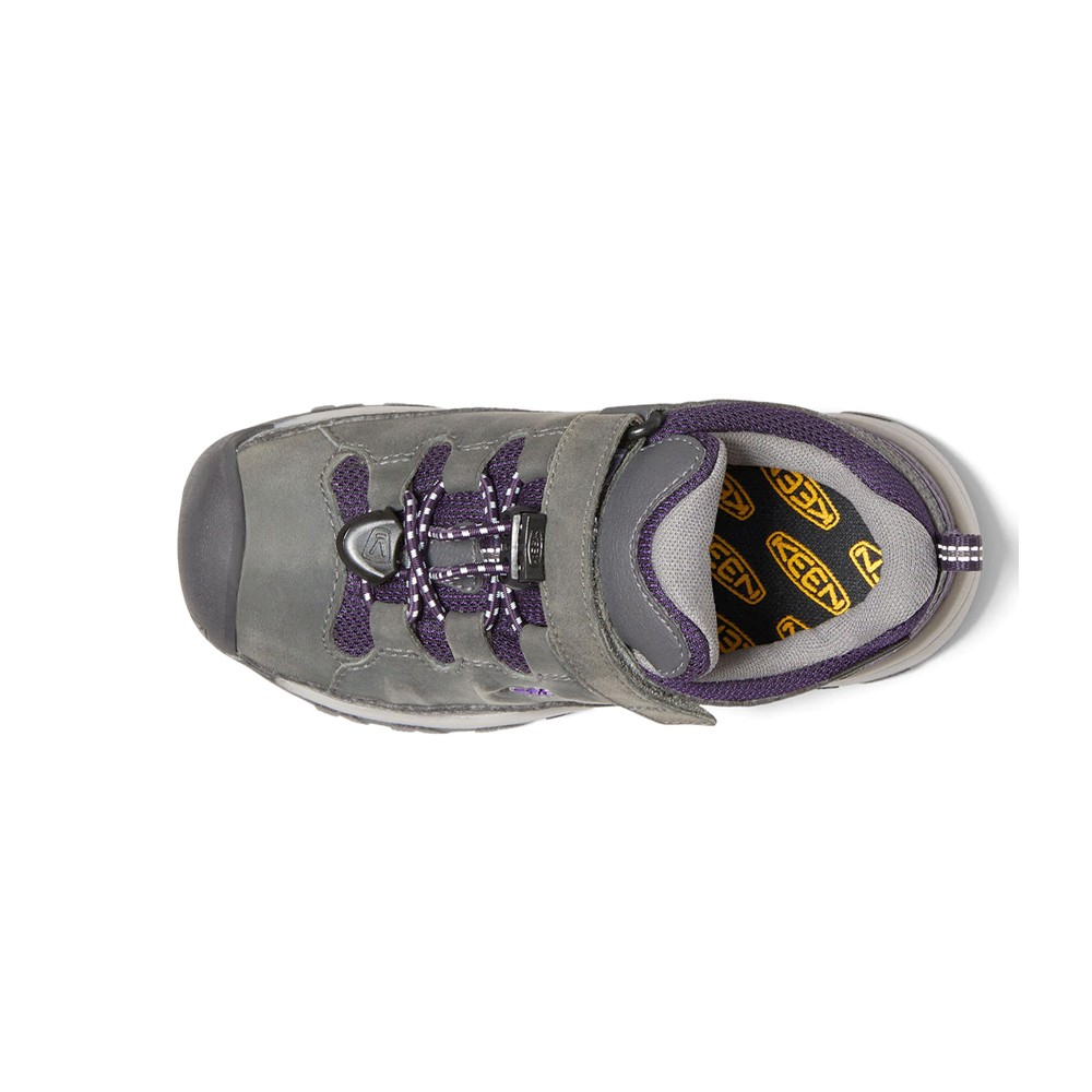 Targhee Low Waterproof Hiking Shoes (Little Kid) Product Details Leather upper Lace lock bungee system Breathable mesh lining Non marking KEEN.FUSION rubber outsole When kids are outside, the whole world is wide open. There are trails to explore, rocks to climb, and structures to play on. Keen's kids' original hybrid hiking trainer is designed for the trail but ready to give kids rugged protection and room for your toes comfort wherever the fun takes them. Additional Details Color: Grey Occasion: Casual Gender: Boys Age: Youth Brand: Keen