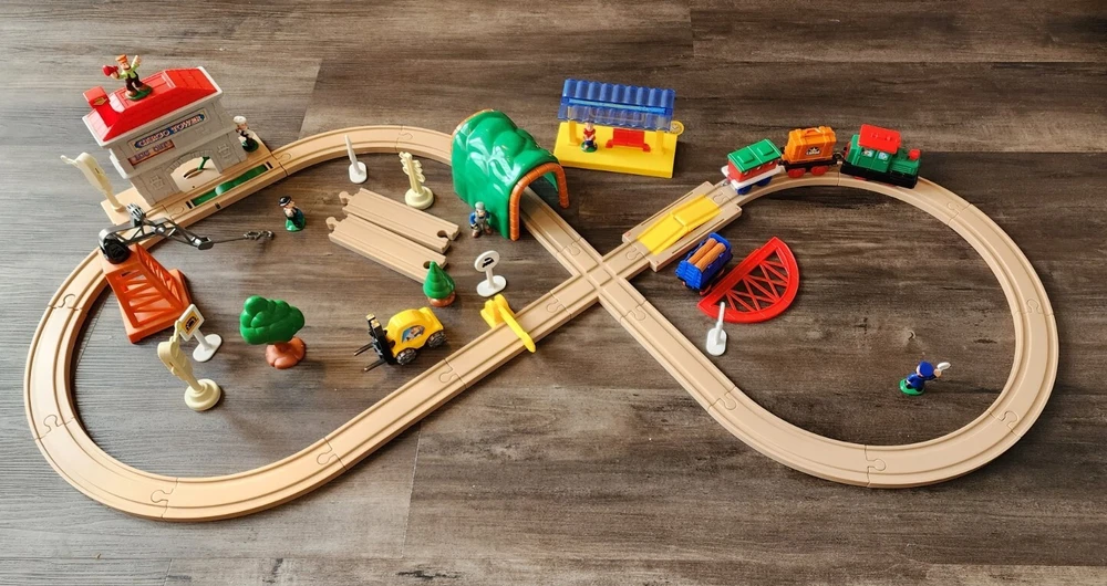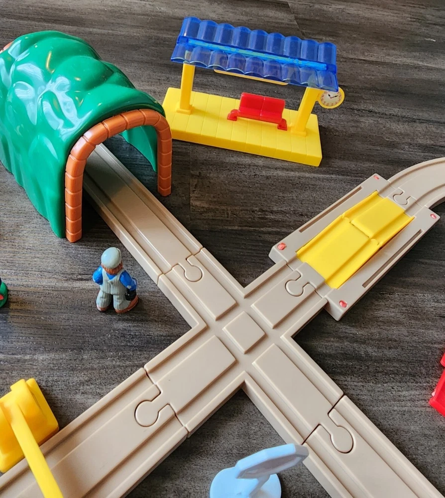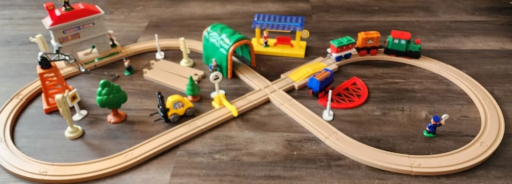 Keenway Plastic Trains and train Track, People, And Accessories vintage, comes with trains, tracks, people trees ect. Good condition, but sold As is no returns accepted as it's vintage, the only thing wrong is one of the rails is broken picture is shown