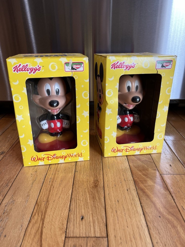 Kellogg's 2002 Walt Disney World Mickey Mouse Bobblehead - New in box Lot Of 2 Preowned but Unopened. Both boxes do have damage on exterior. Please be sure to see all pics prior to purchase. Thx for shopping! TE25