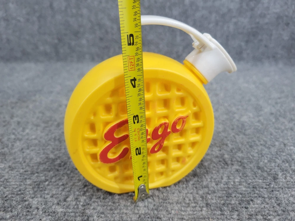 This Kellogg's Eggo Waffle Warm and Pour Waffle Shaped Syrup Dispenser is a must-have for any collector of vintage advertising items. The container is designed in the shape of the iconic Eggo waffle and features the classic red and yellow colors of the brand. The dispenser is perfect for holding your favorite syrup or other condiments, and its original and authentic design makes it a great addition to any collection. Whether you are a fan of Kellogg's or just love collecting unique advertising items, this Eggo Waffle Warm and Pour Waffle Shaped Syrup Dispenser is sure to impress. Its compact size and easy-to-use design make it a great choice for any kitchen or collection. Add it to your collection today and enjoy the nostalgia of this classic Kellogg's item.