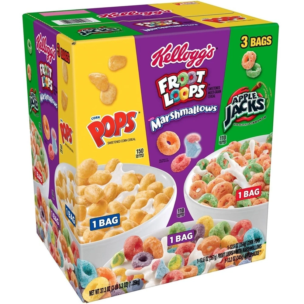 One variety pack that is Great for the whole household. Enjoy all your favorite cereal varieties. Kelloggs Kids Variety Pack (37.3 Ounce) One variety pack that is Great for the whole household. Enjoy all your favorite cereal varieties. Product Attributes: Ship From Zip Code : 78620 Weight (lbs.) : 9.50 lb Length (in.) : 10 Width (in.) : 8 Height (in.) : 14 UPC: 038000191077 Brand: Kellogg