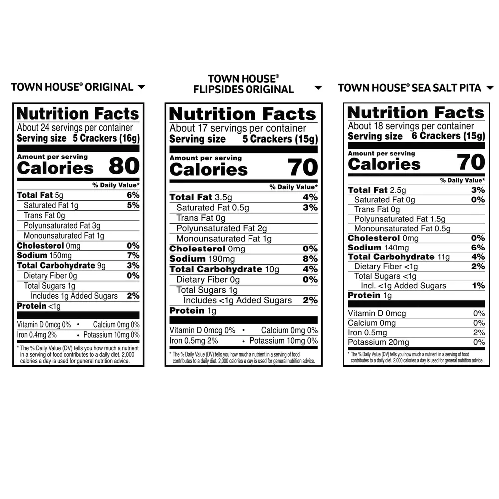 Kellogg's Town House Crackers, Party Snacks, Party Pack, Variety Pack (4 Boxes) Description Welcome to the great-tasting way to entertain everyone's taste buds, including yours. It's the classic, inviting taste of Town House in a variety pack that features flavors to delight family, friends, and neighbors. Now you can bring crispy, crunchy, oven-baked goodness to your table in a snap. Take your pick of Town House Light and Buttery Original Crackers, Town House Sea Salt Pita Crackers inspired by oven-baked pita bread, and Town House Flip Sides Original; Pair them with favorites such as cheese spread, spinach dip, or hummus at your next party or enjoy them as a satisfying snack. Share them with the kids to create a tastefully inspired snacking experience. Heading to a get-together? Take a box along with your favorite cheeses as an exciting alternative to chips. Whether you're planning a family night, small get- together, or large gathering, serving up memorable snack times in and out of your home starts with Town House. Features: A variety pack of irresistibly crispy crackers that love to be dipped, dunked, and topped or enjoyed all on their own Every batch is made from a tried and true, oven-baked recipe Contains delicious ingredients, like whole wheat flour, that complement a variety of dips, spreads, and toppings Great for adults and kids; Stock them in your home pantry; Keep on hand for unexpected guests Includes two, 13.8oz boxes of Town House Original, one, 9.2oz box of Town House Flip Sides Original, and one, 9.6oz box of Town House Pita Sea Salt crackers Product Details: Flavor: Variety Pack Brand: Townhouse Item Weight: 2.9 Pounds Allergen Information: Wheat, Milk, Soy Package Information: Box Package Dimensions ‏ : ‎ 10.59 x 8.62 x 6.77 inches; 2.89 Pounds Manufacturer ‏ : ‎ Kellogg's Country of Origin ‏ : ‎ USA Handling We will ship all orders within 3 business days of payment. Delivery We do not ship outside of the Continental US. Feedback We take our reputation seriously, we buy and sell online, so we understand the value of trust. If you are unsatisfied with your order, please contact us and we will work with you to resolve it to your satisfaction.