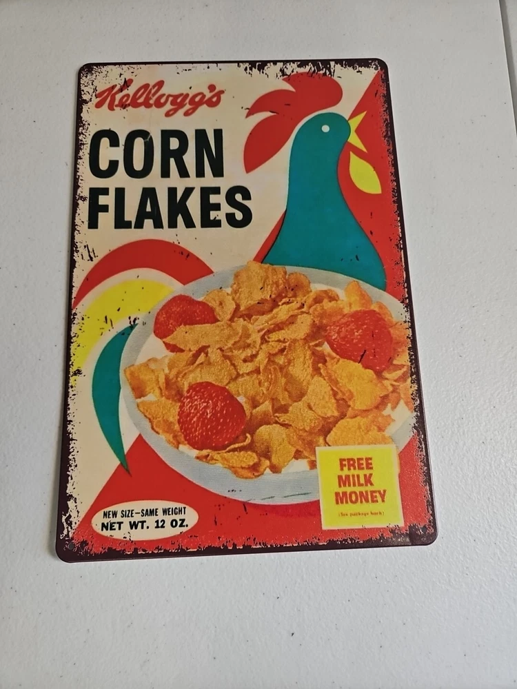Features: Decorative, Indoor, Outdoor Material: Metal Style: Rustic/Primitive Theme: Novelty Room: Any Room, Kitchen Additional Parts Required: No Subject: kellogs Mounting: Wall Mounted, Hanging, Door Mounted Brand: Unbranded Shape: Rectangle Color: Multicolor Finish: Metallic Item Height: 12 in Item Width: 8 inches Type: Sign Orientation: Vertical