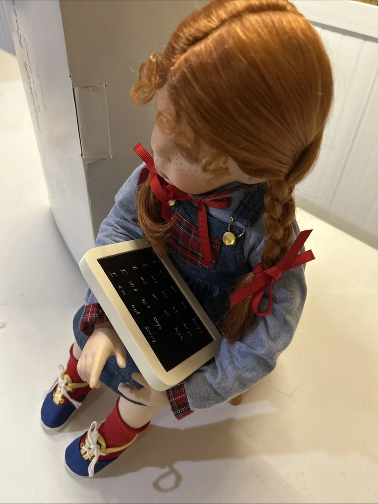 Kelly Rubert Hannah Rose Red Hair Girl Doll, Band aid hurt knee, NIB with stool and chalkboard, from smoke free home