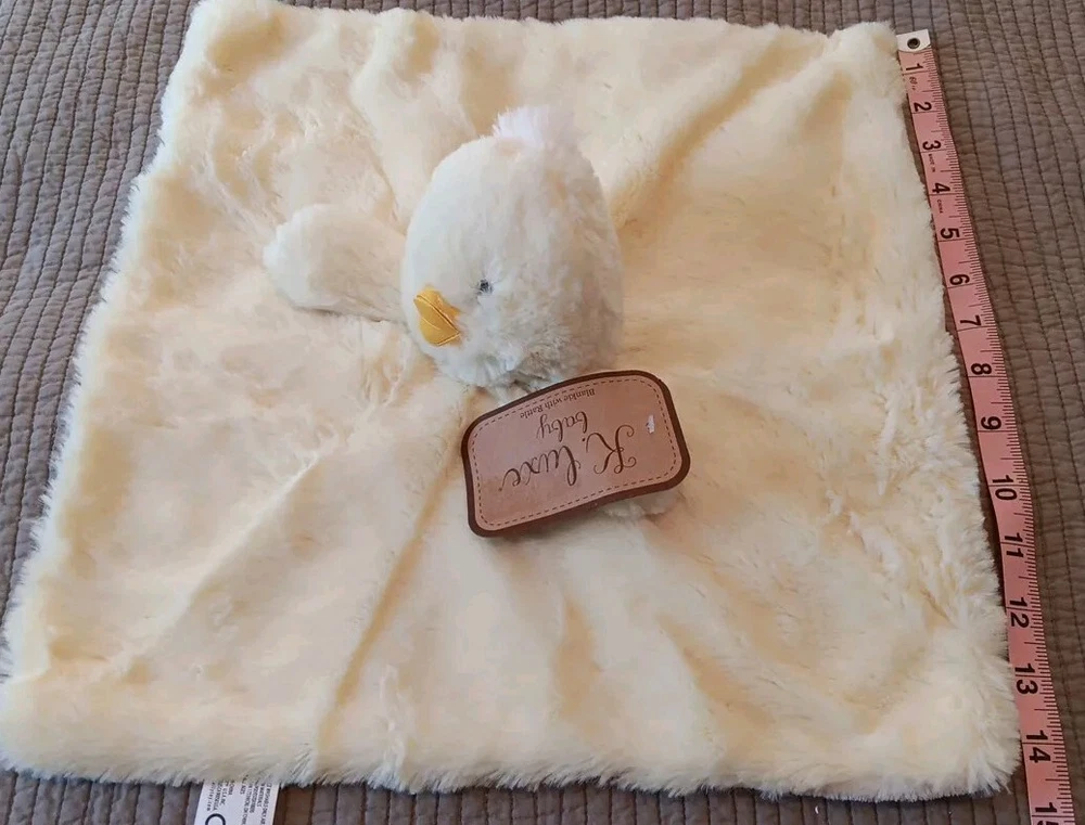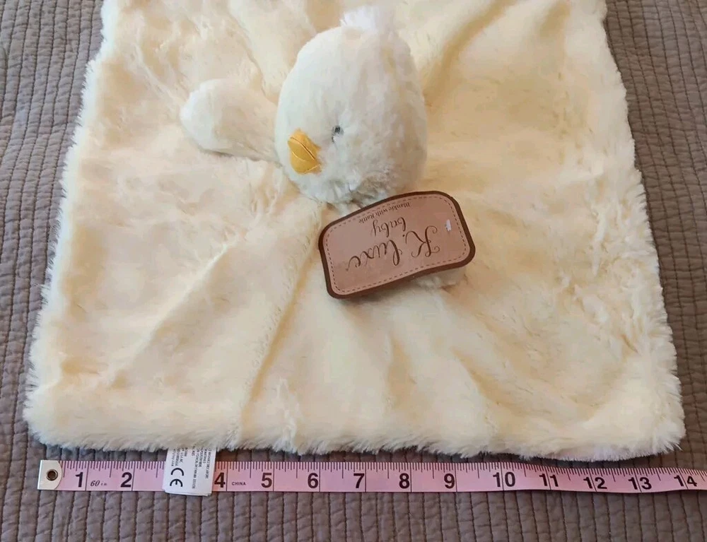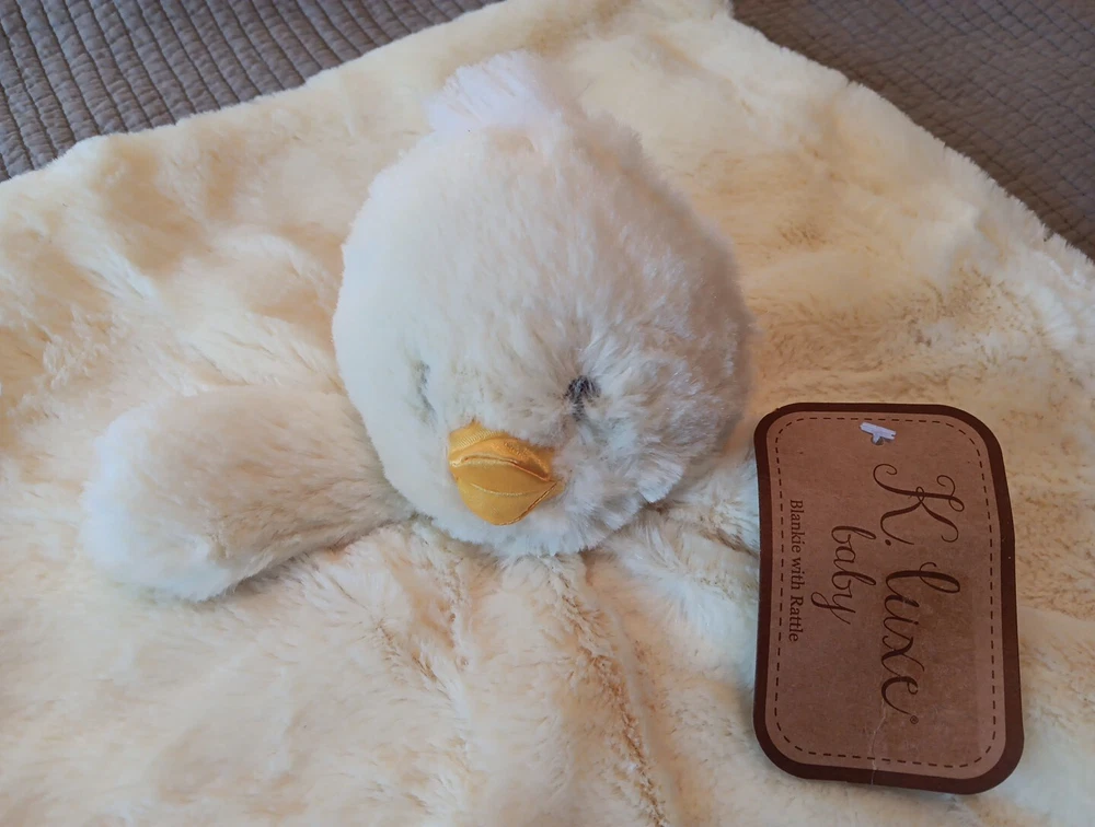This adorable Kellytoy K Luxe plush toy is the perfect addition to any baby's toy collection. The bright yellow color and soft, cuddly texture make it a great choice for a lovey or rattle toy. The toy is designed with a cute duck theme and is made by the well-known brand Kellytoy.