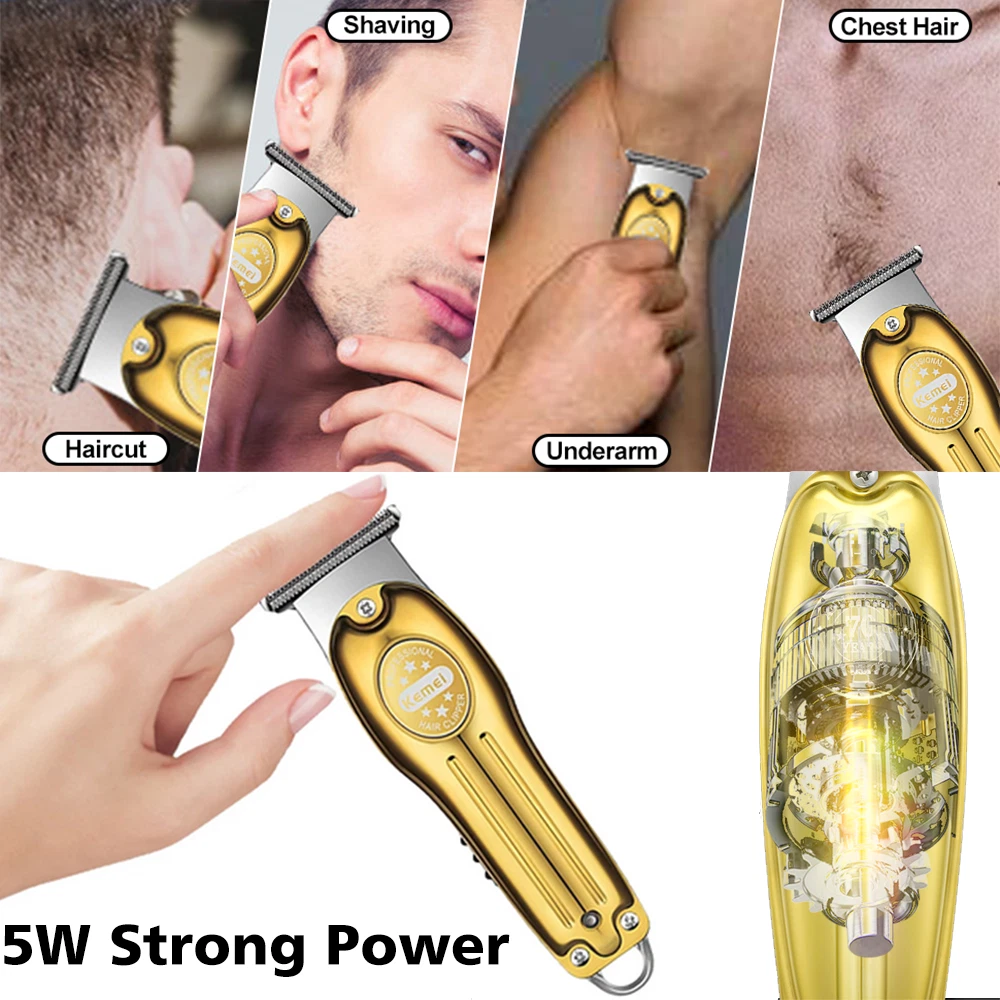 Power Source: Electric Brand: Kemei Country/Region of Manufacture: China Item Length: 2 in Head Type: T-Blade Body Area: Back, Body, Chest, Ear, Eyebrow, Face, Neck, Nose, Pubic, Upper Lip Type: Trimmer Cutting Lengths: 3mm, 2mm, 1mm, 0mm Number of Heads: 1 Color: Gold/Sliver Features: Cordless, 360° Rotating Head, Adjustable Speed, All-In-One, Cleaning System, Comes With Storage Case, Dual Voltage, Folding Blade, Low Battery Indicator, Non-Slip Grip, Quick Charging Time, Rechargeable, Self-Sharpening, Swivel Cord, Waterproof, Washable, Travel Size, Wet/Dry Motor Type: Rotary Department: Men Model: Kemei-679