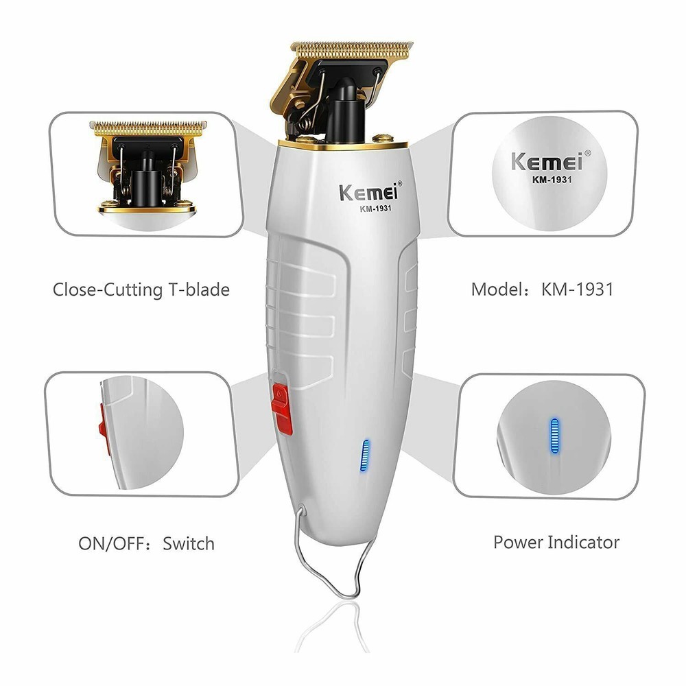 About this item Professional Precision; Kemei 1931 is a T outline clipper with smooth, sharp and precise performance.It's perfect for trimming,all-around outlining,dry-shaving and fading with cordless freedom and convenience. Titanium T : The is made of high-carbon steel,which stay sharp for comfortable trimming.This hair clipper can be zero-gapped,and it's designed for detailing and fine line trimming. Large-Capacity Lithium Battery: Built-in 2000mAh rechargeable Li-ion battery delivers over 100 minutes of nonstop run time after charging 2.5 hours.The LED light will indicate battery power levels. Portable and Convenient: USB charge and Cord/Cordless operation features is more convinient.It can be connected to USB-powered devices such as adapters,computers,car chargers,mobile power supplies,etc. Accessories Included: For your more convenient use,KM-1931 is equipped with all the accessories needed by professional barbers:1 trimmer,1 lubricating oil,1 cleaning brush,1 comb,1 USB cable,5 limit guards (1mm,2mm,3mm,4mm Product Description Kemei-1931 is a professional 0mm hair clipper/beard trimmer with smooth, sharp and precise performance. No doubt it works well on balding and fading with a self-sharpening high carbon steel titanium . It’s a good choice for you! Kemei Professional 0mm Hair trimmer: *Compact body *High carbon steel titanium *Long battery life *Indicator light (alert you when the battery is low) *USB charging (faster and more convenient to charge) *Easy to carry, suitable for travel *Suitable for hair cutting, beard trimming, fading and engraving What's in the box 1 * Kemei-1931 Hair Clipper 5* Limit Combs (1mm, 2mm, 3mm, 4mm 1 * Cleaning Brush 1 * USB Charging Cable 1 * Instruction High carbon steel titanium Equipped with a self-sharpening high carbon steel titanium , zero distance cutting is possible. It is a perfect tool for trimming edges, sculpting, and balding USB quick charging USB charging is more convenient, charging for 2.5 hours and using for 180 minutes.The indicator light is red when the battery is low and blue when it is fully charged Powerful motor Adopt high speed professional motor, strong power, low noise. You can trim various hairstyles easily, non-stick hair, non hair-card Hair cutting tools Easy to use, simple. Choose the right limit comb, you can easily cut hair for yourself or family members, suitable for the elderly, children, women and men Beard trimming tools Used in conjunction with the different limit comb, it can be used to control the length of the beard, so that the beard length is the same, is the perfect tool for beard maintenance DIY design tools Can cut a clear outline, you can easily carve out your favorite hair styles, very suitable for barbers and beginners to use. You will enjoy it! Shipment 1. We will send out your orders in one day as soon as we receive your payment. 2. Delivery ways: SpeedPAK, China POST,YANWEN, EMS, USPS,UPS,TNT, DHL etc. 3. Delivery time:10-15 days to USA, 20-30 days to UK, Germany, French, Australia, Canada, etc, Over 30 days to other countries. Return If the item you received is damaged or defective, Please contact us immediately. We will free exchange or refund. We will pay the return shipping costs if the product is defective or the return is a result of our error. If the item is returned for any other reason you are responsible for the return shipping charges. You can return your purchase for up to 15 days from the date of delivery. No refund will be issued if the product shows signs of use. Returned package must be in the original packaging, everything must be in new condition, No missing parts. Our guarantee does not cover accidental damage or wear of product caused by customer. Thank you very much for your understanding! Feedback 100% satisfaction is our aim to pursue. If you have any concerns, please contact us firstly by email. • Please leave me FIVE star POSITIVE feedback if you are satisfied with our items. • Please CONTACT me immediately before leave us neutral feedback or negative feedback, We will provide s olutions and try our to resolve any problems for you. Contact Us Service is our first priority ! If you contact us immediately after placing the order, we will make every effort to assist you with your change request. Unfortunately, we can not make changes or cancel an order once it has been shipped out. Any help, needs or questions, please do not hesitate to contact us. We will quick response within 24 hours from Monday to Friday. Thank you for buying from our store!
