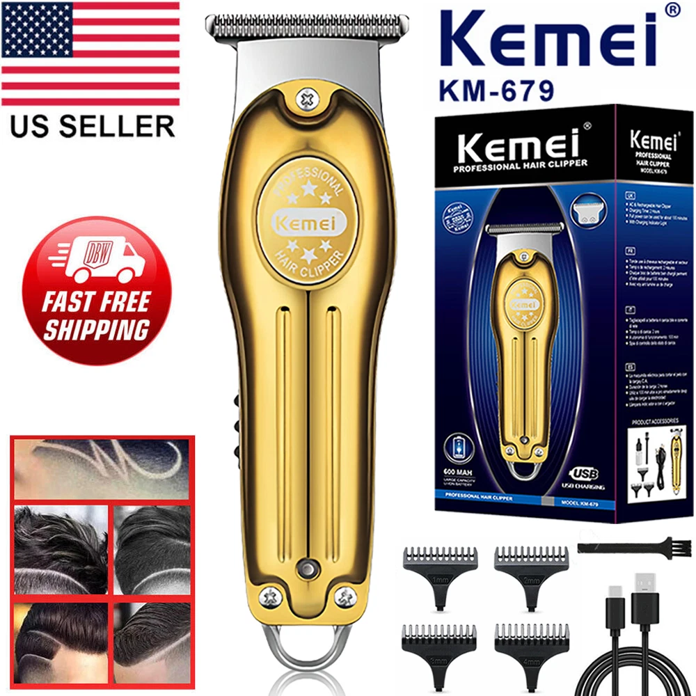 Describe: Professional barber tool, or use at home. Stainless steel blade, avoid skin irritation, very hot, does not pull hair, blade width 45mm. Low noise, high power. Ergonomic and stylish handle design, comfortable to hold and operate. Note: Due to air transport restrictions, liquids cannot be transported, so oil bottles are not included in the package, please note. Due to manual measurement, there is a size error of about 1-5mm. Due to different monitor calibrations, the colors of the items shown in the photos may appear slightly different on your computer monitor. Product parameters : Brand: Kemei Model: KM-679 Product name: hair clipper Color options: Gold/Sliver Charging method: USB charging Battery Weight: 600mAh Voltage/Power: 3.7V/5W Weight size: 125g/4*13.8cm Use time: 2 hours of charging, 100 minutes of use Product acessorie s : 1*Host 1*protective cover 3*limiting comb (1/2/3)mm 1*USB cable 1*Cleaning brush
