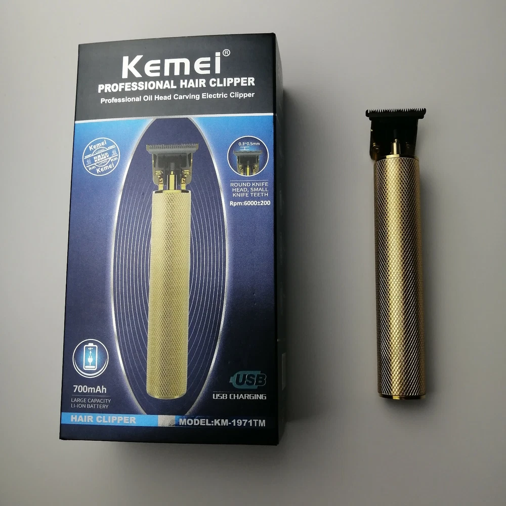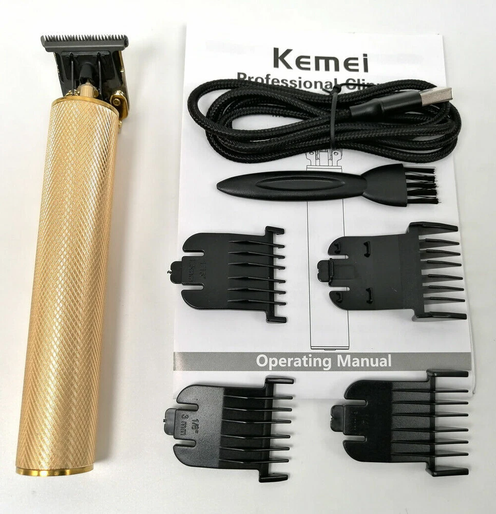 Kemei Professional T-Outliner Beard Trimmer Hair Clipper Barber Cordless 100% Original Guarantee Professional Kemei 1971 Gold Color with Gold Description: The Kemei 1971 features a quite, yet very powerful motor. The carbon steel T-blades are designed for zero gapped and close cutting capability. The trimmer has a powerful rotary motor featuring 6,200 revolutions per minute. Perfect for outlining hair to make designs and zero fade trimming. This clipper features a cross diamond metal design, providing a superior grip. Features: R-Shaped Cutter Head: Smooth outline and carving, as well as for 0 shaver trimmer Stainless Steel : Exquisite stainless steel provides durability and smooth trims Quiet & Powerful Motor: 6,200 RPM (revolutions per minute) Battery Light Indicator: Informs clipper battery status Push Button Start: Button at the bottom of device turns device on and off Specifications: Battery: 700 mAh Power: 5W Use Time: 120 minutes Charge Time: 2 hours Material: Stainless Steel Package Include: 1x Hair clipper 1x Cleaning brush 1x USB Rechargeable Battery Charger 4x Limit combs (1.5 mm, 3mm, 6mm, and 9 mm) 1x Lubricating oil ShipmentPaymentReturns 1. We will send out your orders in one day as soon as we receive your payment. 2. Delivery ways: Speedpard, China POST, YANWEN, EMS, USPS, TNT, DHL etc. 3. Delivery time:10-15 days to USA, 7-20 days to UK, Germany, French, Australia, Canada, etc, Over 30 days to other countries. We accept PayPal. All payments must be made within 7 days after the auction ends. Non-paying bidders will be reported to eBay. Please don't buy an item if you can't/won't pay for it. Paypal is the easiest way to pay for items on eBay. Please make sure your Paypal and eBay accounts have the same physical address used for delivery and the same e-mail address to ensure payment confirmation. Shipping: Import duties, taxes and charges are not included in the item price or shipping charges. These charges are the buyer's responsibility. If the item you received is damaged or defective,Please contact us immidately.We will free exchange or refund. We will pay the return shipping costs if the product is defective or the return is a result of our error. If the item is returned for any other reason you are responsible for the return shipping charges. You can return your purchase for up to 15 days from the date of delivery. No refund will be issued if the product shows signs of use. Returned package must be in the original packaging, everything must be in new condition, No missing parts. Our guarantee does not cover accidental damage or wear of product caused by customer.Thank you very much for your understanding! Feedback We commited ourselfs to your 100% satisfaction both with our goods and services. • Please leave me FIVE star POSITIVE feedback if you are satisfied with our items. • Please CONTACT me immediately before leave us neutral feedback or negtive feedback, We will try our to resolve any problem for you untill you are satisfied. Contact Us Serivce is our first priority ! If you contact us immediately after placing the order, we will make every effort to assist you with your change request. Unfortunately, we can not make changes or cancel an order once it has been shipped. Any help,need or questions, please do not hesitate to contact us. We will quick response within 24 hours from Monday to Friday. Thank you for buying from our store!