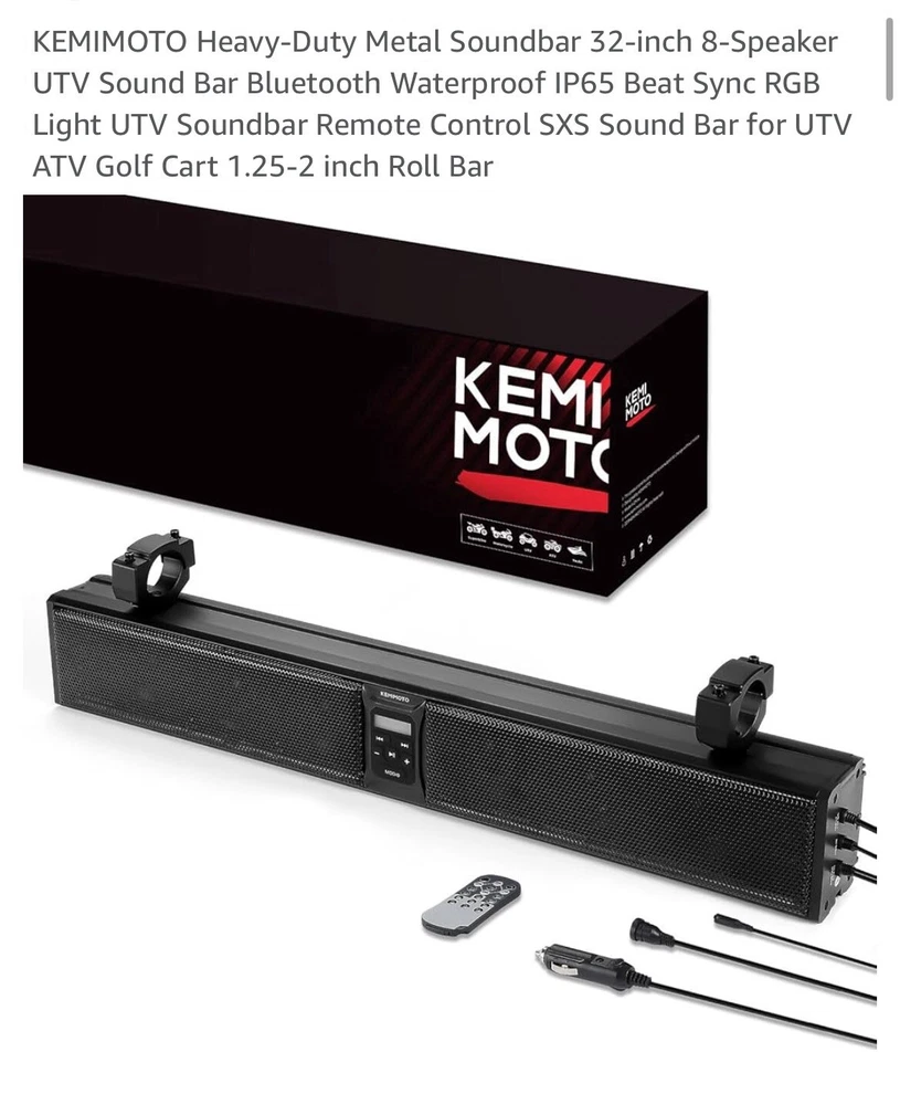 Kemimoto Soundbar Audio System KEMIMOTO Heavy-Duty Metal Soundbar 32-inch 8-Speaker UTV Sound Bar Bluetooth Waterproof IP65 Beat Sync RGB Light UTV Soundbar Remote Control SXS Sound Bar for UTV ATV Golf Cart 1.25-2 inch Roll Bar