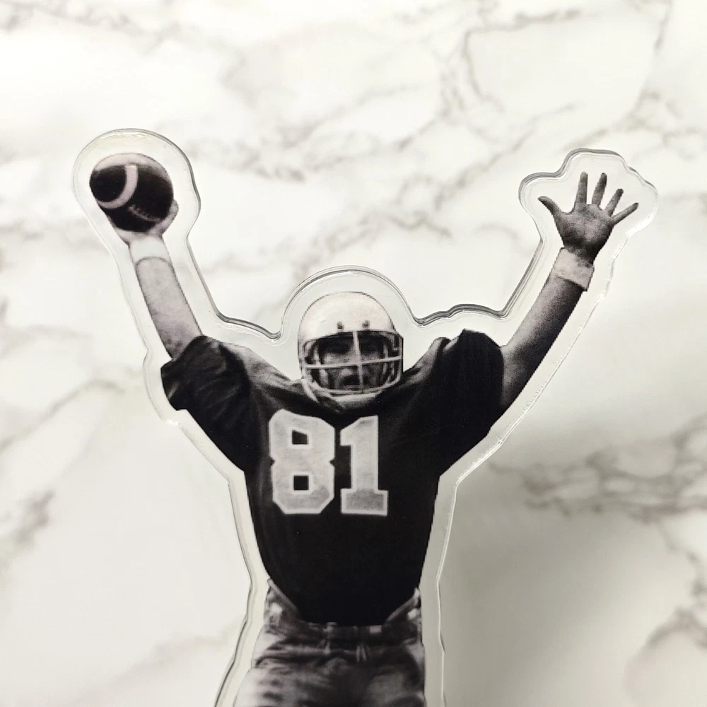 Item Details: Laser-cut 2D (Two Dimensional) acrylic standee Measure: Approx 6.4 inches tall One side design Material: 100% Acrylic Add this to your never ending collection of football memorabilia. This laser-cut two dimensional figurine depicts your favorite player in action. Whether displayed in your home, office, for fan cave, this item is perfect for showcasing your love for football.