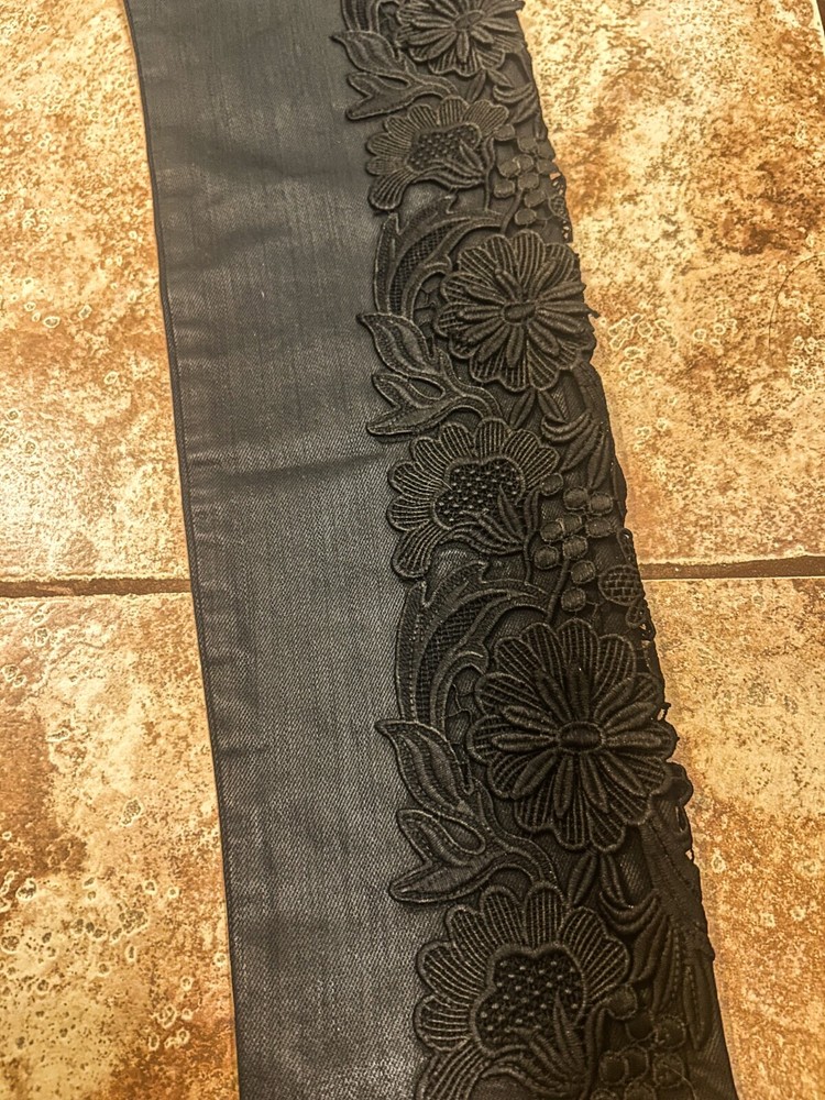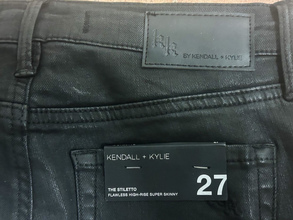 Turn heads and make a statement with the Kendall + Kylie “The Stiletto” polished black skinny jeans! These high-rise super skinny stunners are the epitome of edgy sophistication. Crafted for a flawless fit, they hug your curves in all the right places while exuding a sleek, leather-like sheen. The standout feature? Elegant lace floral details running along the front of each leg, adding a touch of romantic charm to their bold, modern vibe. Perfect for a night out or dressing up your everyday look, these jeans are as fun and flirty as they are effortlessly chic.