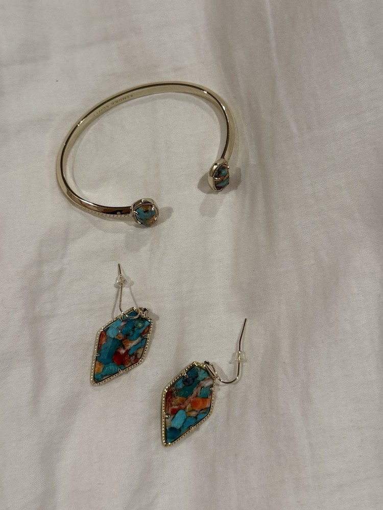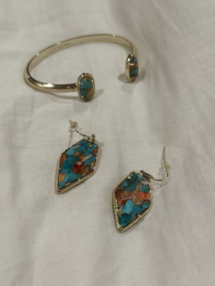 Chic Kendra Scott bracelet & earrings with vibrant turquoise stones. Gifted & never worn! Comes as a set earrings & bracelet.