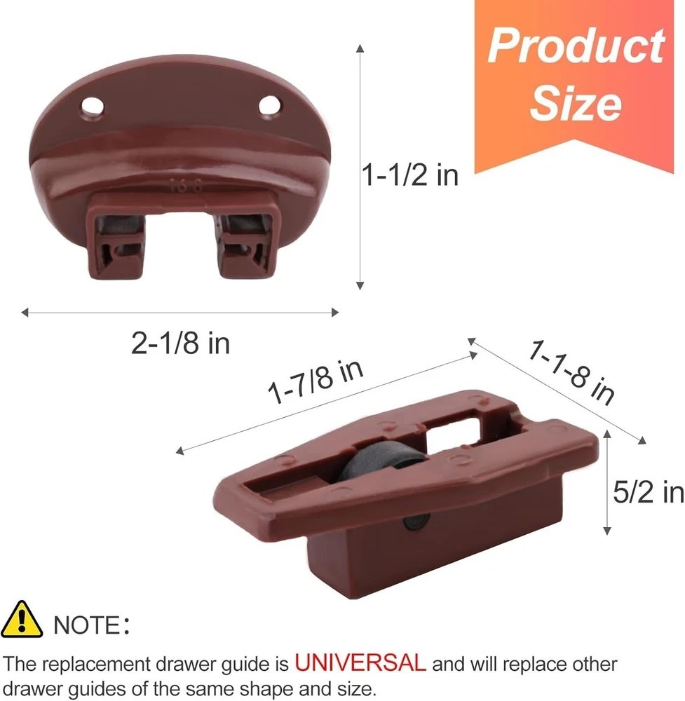 About this item 【Wide Compatibility】The drawer rail guide is UNIVERSAL and can replace drawer parts of the same shape and size. Compatible with kenlin rite-trak 2 fits manufacturers such as Vaughan Bassett, Legacy, Pulaski, Amish, Danish, Broyhill, Ashley, Pottery Barnand and more. ⚠️⚠️ You can know whether this item is suitable for your drawer repair parts according to pictures 2, 3. If you're not sure if a drawer rail replacement kit will fit, send us an email so we can confirm it for you. 【10x Stronger than the OEM】The rite-trak II replacement dresser drawer slides is a vast improvement over the original drawer guides. The plastic drawer guides are made of high quality PP hard plastic for longer life. The metal backs are made of galvanized iron, which is corrosion and rust resistant and will not break easily for a longer service life. 【Makes Drawer Feel Like New】Whether you’re fixing a dresser drawer system or restoring a vintage hutch, compatible with kenlin #168 drawer slides are a quick and inexpensive fix. Compatible with kenlin rite-trak ii replacement drawer track slide kits are a perfect upgrade to the plastic glides installed by the manufacturer. The extra metal cap provides sturdiness and longevity.You don't have to put up with squeaky, wobbly drawers anymore. 【Easy to Install】These are perfect drawer stoppers to replace the ones damaged on our chest of drawers in a move. Replacement was easy enough, just unscrewing the old ones and popping them off, then popping in the new ones and screwing them down - it will be the easiest part of your replacement or restoration project! You can find the installation video on Youtube, just search for "rite-trak II" to find the installation video. 【5 Years Supports】Sacumea is committed to giving buyers a happy shopping experience. And insist on providing excellent after-sales service for customers. If you have any dissatisfaction with the compatibility and quality of the rite-trak 2 drawer rail slide replacement kit, please click the seller information on the store or order page to contact us. We will provide you with services according to your needs. Product Description Drawer Slides for Rite-Trak II Replacement 168 Track Guides kenlin rite-trak II replacement 168 track guides The rite-trak 2 dresser drawer slides is a vast improvement over the original drawer guides. The drawer guides are made of high quality PP hard plastic for longer life. The metal backs are made of galvanized iron, which is corrosion and rust resistant and will not break for a longer service life. Makes Drawer Feel Like New Drawer Slides for kenlin Rite-Trak II Replacement 168 Track Guides The drawer repair kit With metal backing, and new style drawer stop with roller, extra plastic reinforcement, and larger head screws for reinforcement and extended life of guide system. Drawer Slides for kenlin Rite-Trak II Replacement 168 Track Guides The drawer guide is UNIVERSAL and can replace drawer parts of the same shape and size. This fits manufacturers such as Vaughan Bassett, Legacy, Pulaski, Amish, Danish, Broyhill, Ashley, Pottery Barnand and more. NOTE: You can know whether the item fit for your drawer according to pictures 2, 3. Product Size Package Includes: 5 dark-brown plastic track guides 5 new style drawer stop with roller 5 metal backing 15 Phillips drive pan head screws Drawer Slides for kenlin Rite-Trak II Replacement 168 Track Guides Application Range Drawer Slides for kenlin Rite-Trak II Replacement 168 Track Guides The rite-trak ii metal track replacement is great for your dresser, drawers on non-cabin, chest,armory, buffet, writing desks, study tables, storage cabinets, TV cabinets, etc. Drawer Slides for kenlin Rite-Trak II Replacement 168 Track Guides Shipping We offer FREE shipping on all orders! We ship within Three business days of payment, usually sooner. We use a selection of shipping services such as UPS, FedEx, USPS etc. We only ship to the lower 48 states, no APO/FPO addresses or PO Boxes allowed. Local pickups and combined shipping options are not provided at this time. Return You can return a product for up to 30 days from the date you purchased it. Any product you return must be in the same condition you received it and in the original packaging. Please keep the receipt. Payment We accept payment by any of the following methods: PayPal Please pay as soon as possible after winning an auction, as that will allow us to post your item to you sooner! Feedback Customer satisfaction is very important to us. If you have any problem with your order, please contact us and we will do our best to make you satisfied. Contact Us If you have any queries, please contact us via ebay. We usually respond within 24 hours on weekdays. Please visit our eBay store to check out other items for sale! Thank you for shopping at our store. Disclaimer We are working with different suppliers in USA to deliver the item to your doorstep. If you have any issues regarding the item, Feel free to ask.