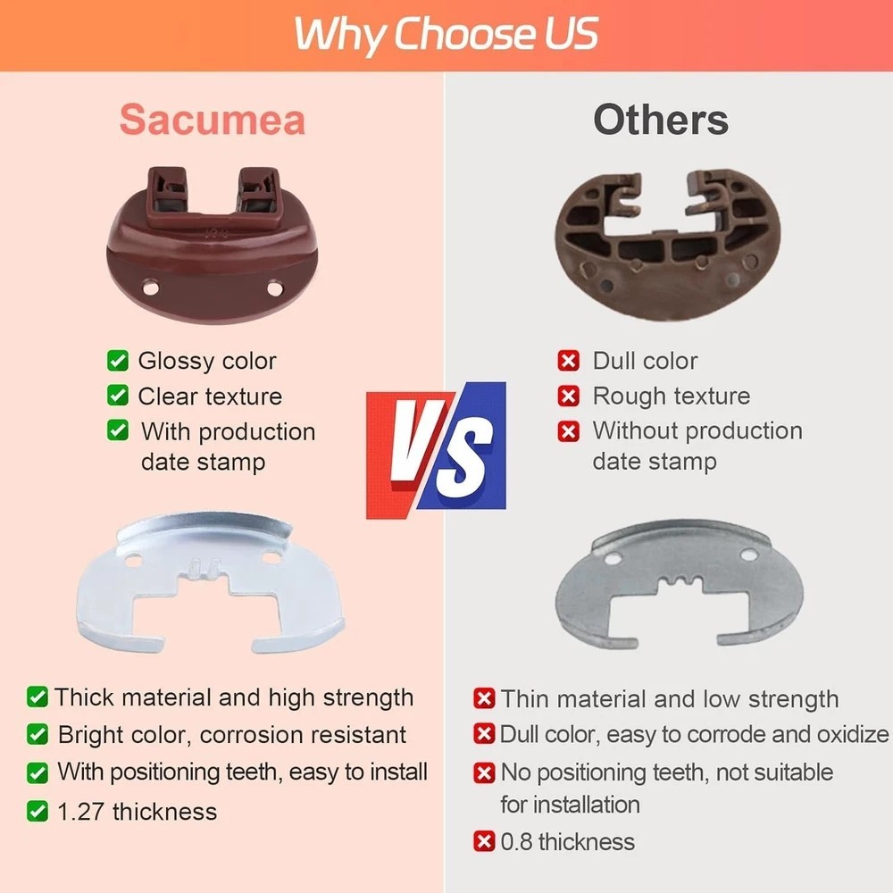 About this item 【Wide Compatibility】The drawer rail guide is UNIVERSAL and can replace drawer parts of the same shape and size. Compatible with kenlin rite-trak 2 fits manufacturers such as Vaughan Bassett, Legacy, Pulaski, Amish, Danish, Broyhill, Ashley, Pottery Barnand and more. ⚠️⚠️ You can know whether this item is suitable for your drawer repair parts according to pictures 2, 3. If you're not sure if a drawer rail replacement kit will fit, send us an email so we can confirm it for you. 【10x Stronger than the OEM】The rite-trak II replacement dresser drawer slides is a vast improvement over the original drawer guides. The plastic drawer guides are made of high quality PP hard plastic for longer life. The metal backs are made of galvanized iron, which is corrosion and rust resistant and will not break easily for a longer service life. 【Makes Drawer Feel Like New】Whether you’re fixing a dresser drawer system or restoring a vintage hutch, compatible with kenlin #168 drawer slides are a quick and inexpensive fix. Compatible with kenlin rite-trak ii replacement drawer track slide kits are a perfect upgrade to the plastic glides installed by the manufacturer. The extra metal cap provides sturdiness and longevity.You don't have to put up with squeaky, wobbly drawers anymore. 【Easy to Install】These are perfect drawer stoppers to replace the ones damaged on our chest of drawers in a move. Replacement was easy enough, just unscrewing the old ones and popping them off, then popping in the new ones and screwing them down - it will be the easiest part of your replacement or restoration project! You can find the installation video on Youtube, just search for "rite-trak II" to find the installation video. 【5 Years Supports】Sacumea is committed to giving buyers a happy shopping experience. And insist on providing excellent after-sales service for customers. If you have any dissatisfaction with the compatibility and quality of the rite-trak 2 drawer rail slide replacement kit, please click the seller information on the store or order page to contact us. We will provide you with services according to your needs. Product Description Drawer Slides for Rite-Trak II Replacement 168 Track Guides kenlin rite-trak II replacement 168 track guides The rite-trak 2 dresser drawer slides is a vast improvement over the original drawer guides. The drawer guides are made of high quality PP hard plastic for longer life. The metal backs are made of galvanized iron, which is corrosion and rust resistant and will not break for a longer service life. Makes Drawer Feel Like New Drawer Slides for kenlin Rite-Trak II Replacement 168 Track Guides The drawer repair kit With metal backing, and new style drawer stop with roller, extra plastic reinforcement, and larger head screws for reinforcement and extended life of guide system. Drawer Slides for kenlin Rite-Trak II Replacement 168 Track Guides The drawer guide is UNIVERSAL and can replace drawer parts of the same shape and size. This fits manufacturers such as Vaughan Bassett, Legacy, Pulaski, Amish, Danish, Broyhill, Ashley, Pottery Barnand and more. NOTE: You can know whether the item fit for your drawer according to pictures 2, 3. Product Size Package Includes: 5 dark-brown plastic track guides 5 new style drawer stop with roller 5 metal backing 15 Phillips drive pan head screws Drawer Slides for kenlin Rite-Trak II Replacement 168 Track Guides Application Range Drawer Slides for kenlin Rite-Trak II Replacement 168 Track Guides The rite-trak ii metal track replacement is great for your dresser, drawers on non-cabin, chest,armory, buffet, writing desks, study tables, storage cabinets, TV cabinets, etc. Drawer Slides for kenlin Rite-Trak II Replacement 168 Track Guides Shipping We offer FREE shipping on all orders! We ship within Three business days of payment, usually sooner. We use a selection of shipping services such as UPS, FedEx, USPS etc. We only ship to the lower 48 states, no APO/FPO addresses or PO Boxes allowed. Local pickups and combined shipping options are not provided at this time. Return You can return a product for up to 30 days from the date you purchased it. Any product you return must be in the same condition you received it and in the original packaging. Please keep the receipt. Payment We accept payment by any of the following methods: PayPal Please pay as soon as possible after winning an auction, as that will allow us to post your item to you sooner! Feedback Customer satisfaction is very important to us. If you have any problem with your order, please contact us and we will do our best to make you satisfied. Contact Us If you have any queries, please contact us via ebay. We usually respond within 24 hours on weekdays. Please visit our eBay store to check out other items for sale! Thank you for shopping at our store. Disclaimer We are working with different suppliers in USA to deliver the item to your doorstep. If you have any issues regarding the item, Feel free to ask.