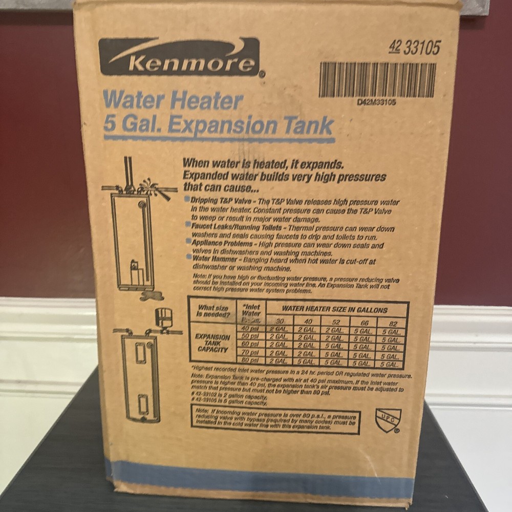 This Kenmore 4233105 5 gallon water heater Expansion Tank is the perfect addition to your home heating system. Designed with high-quality materials and advanced technology, this tank ensures maximum comfort and efficiency. With its large 5 gallon capacity, it can provide you with hot water for an extended period of time. This water heater tank is manufactured by Kenmore, a trusted and reliable brand in the heating industry. Its model number is Kenmore 4233105, and it is compatible with various home improvement projects. Whether you're looking to upgrade your current water heater or expand your heating system, this tank is the ideal choice.