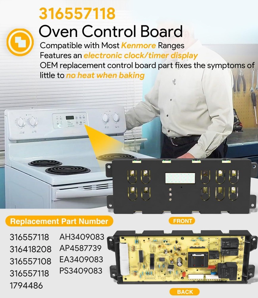 Range Oven Control Board forKenmore Frigidaire Range Clock Timer Timer Display PCB 【Interchangeable Part Number】 Replacement for 316557118 Frigidaire Range Clock Timer Control Board replaces 316418208, 316557108, 316557118, 1794486, AH3409083, AP4587739, EA3409083, PS3409083. 【Wide Compatibility】 Compatible With Most Frigidaire Ranges . Also Compatible with Electrolux Frigidaire Gibson Kelvinator Westinghouse and others . Suitable for some Kenmore range models starting with 7909013, 7909092, 7909093, 7909210, 7909220, 7909230, 7909240, 7909401, 7909402, 7909403, 7909404, 7909421, 7909422, 7909423, 7909433, 7909434, 7909435, 7909436, 7909535, 7909536, 7909539, 7909600, 7909601, 7909602, 7909610, 7909611, 7909612 and 7909613. 【Control Board Upgrade】 OEM replacement control board part fixes the symptoms of little to no heat when baking. Monitors the temperature and controls the oven heat. Controls the temperature in the oven for the bake and broiler settings. Features all OEM functions and an electronic clock / timer display. Designed and engineered to exact specifications. 120 V, 60 Hz 【Safe & Stable Work】 DC92-01596D PCB Main is manufactured with premium PCB materials for durability and exact fit. Excellent moisture resistance for stable performance and reliable durability. Work well with the original wiring as with the updated wiring. If the oven does not bake or broil then it is possible the circuit board has failed. Both heating elements can be tested to determine if the problem is with the element or the control board. 【100% Satisfaction Guarantee】 Your satisfaction is our priority. We strive to give our customers excellent service. All our products support 30-Day money-back guarantee, 12-Month warranty for quality-related issues. Simply return it for your warranty. 1.All Payments must be Confirmed (Shipping and billing addresses must match) Payment is required within 7 days from the date of the auction ending. 2.We accept PayPal, MasterCard, Visa, American Express, Discover and etc payment. 1.Orders will be ship out within 1 business days via USPS, Or UPS . (Orders from Saturdays, Sundays or holidays will process on next business day and will be ship within 24 hours. ) 2.All of the items are shipped from our Warehouse in USA.It will take about 3 to 5 business days to you. 3.Any defective items received can be replaced or refunded. Please contact us with the item number, eBay ID and defect description. 1.100% Satisfaction Guarantee: If you're not 100% satisfied with our items, simply return it for a full refund in 60 days (Items must be in new condition and in original package). Kindly please feel free to contact us before return. 2.Return or Replacements: Support 12 months' Warranty. All product will be tested in 100% before delivery. If the item is was damaged in transit, kindly please contact us for a replacement or refund (Excluding contrived damage or misuse). Any question, please don’t hesitate to let us know. We try our best to reply to your emails as soon as possible, due to high volume of daily incoming emails, we may not be able to reply your emails immediately. Please allow 24 hours for us to response. your understanding and patience is much appreciated!