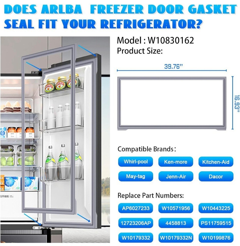 Kenmore Whirlpool French Door Refrigerator Gasket W10830162 Replacement
