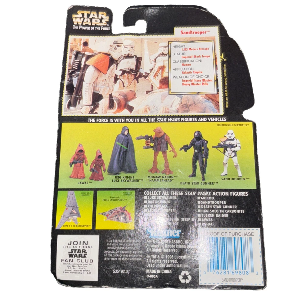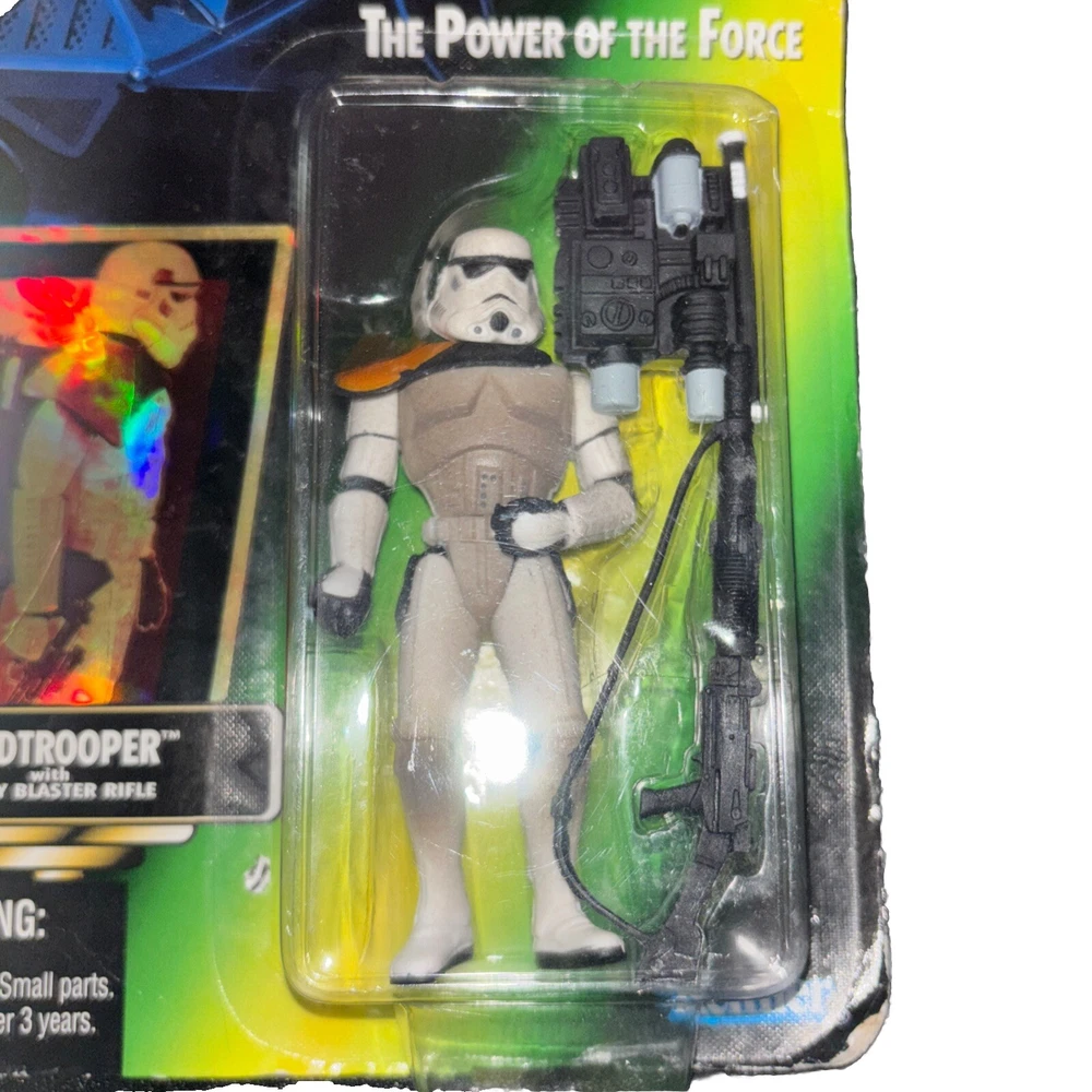 This vintage Star Wars action figure is a must-have for any collector. The 1996 Kenner Power of the Force Sandtrooper is in its original packaging, unopened and ready for display. The figure is in great shape and has been graded a 100. The Imperial Sandtrooper is depicted with a blaster rifle and is part of the original Star Wars franchise. This action figure is perfect for any occasion and would make a great addition to any collection.