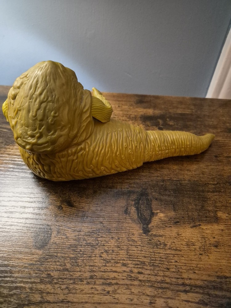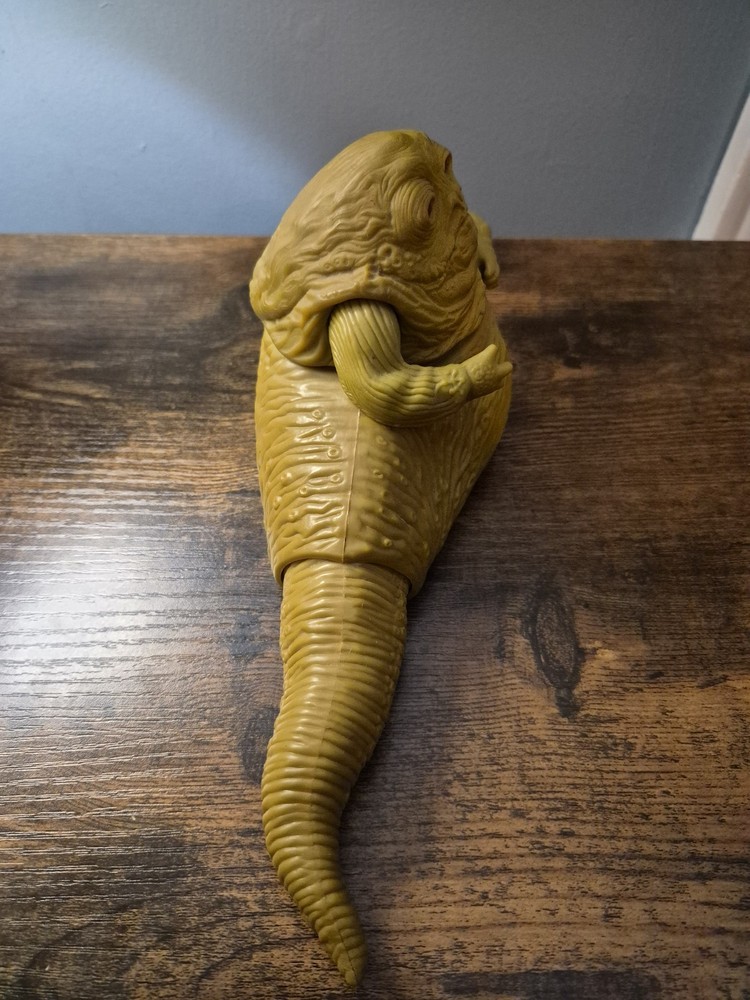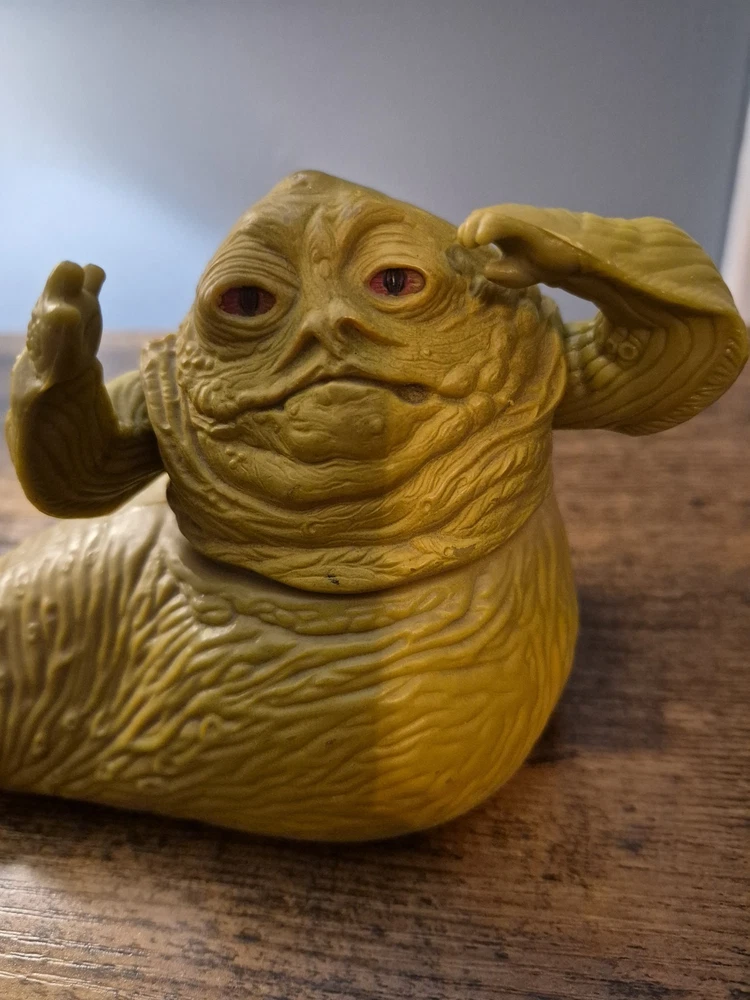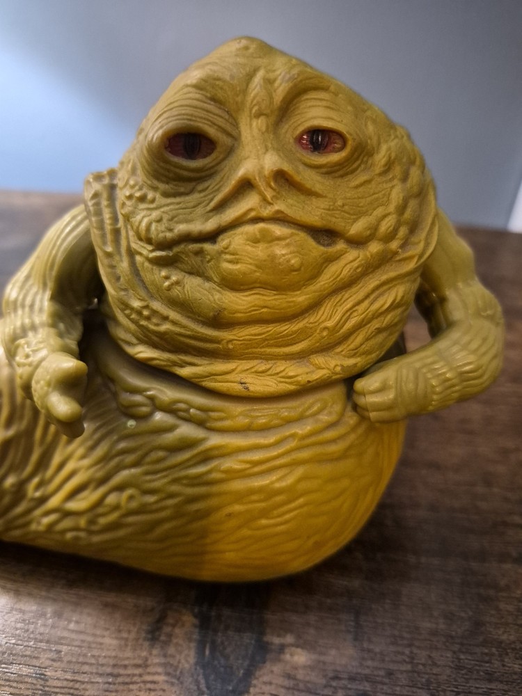 The Kenner Star Wars Jabba the Hutt Vintage Action Figure from 1983, based on the character from the Return of the Jedi movie, is a highly sought-after collectible for fans of the Star Wars franchise. This iconic action figure captures the unique and memorable look of Jabba the Hutt, making it a valuable addition to any science fiction and horror memorabilia collection. With its vintage status and connection to the classic Star Wars series, this toy brings a piece of cinematic history to life for collectors and enthusiasts alike. GREAT USED CONDITION!! WORKING SWIVEL!!