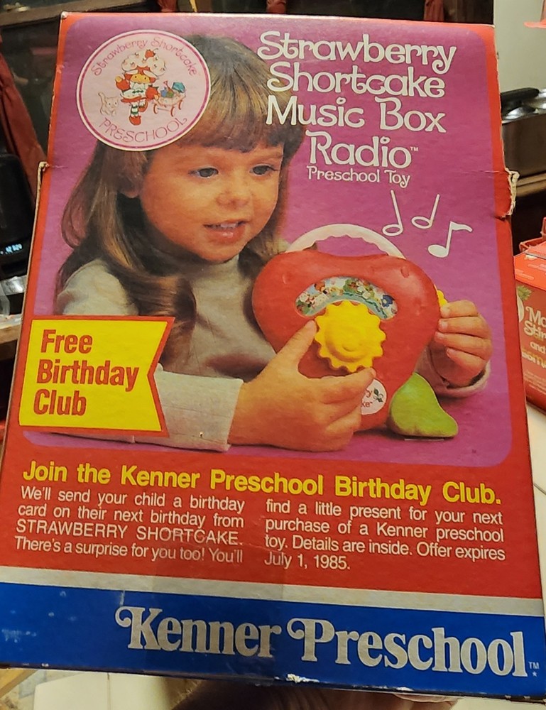 Strawberry Shortcake Music box for baby by Kenner. Still in original packaging. This is from my Mother-in-law's private collection.