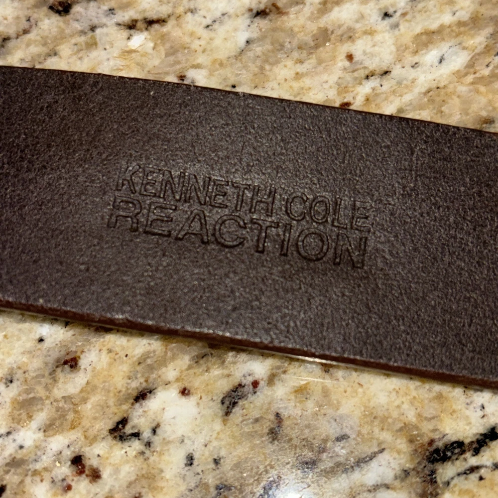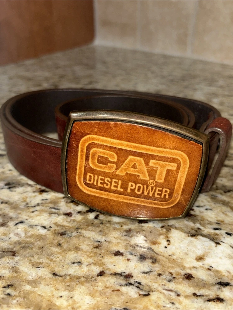 This is a unique Kenneth Cole Reaction leather belt featuring a rugged CAT Diesel Power buckle. Crafted from genuine leather, this belt is marked as a size 36/90 and handcrafted in China. The belt’s quality design and the bold CAT Diesel Power logo on the buckle make it a standout accessory, ideal for CAT enthusiasts or collectors. The leather shows light wear, adding vintage charm. Please refer to the photos for more details on the buckle and belt condition.