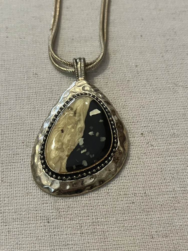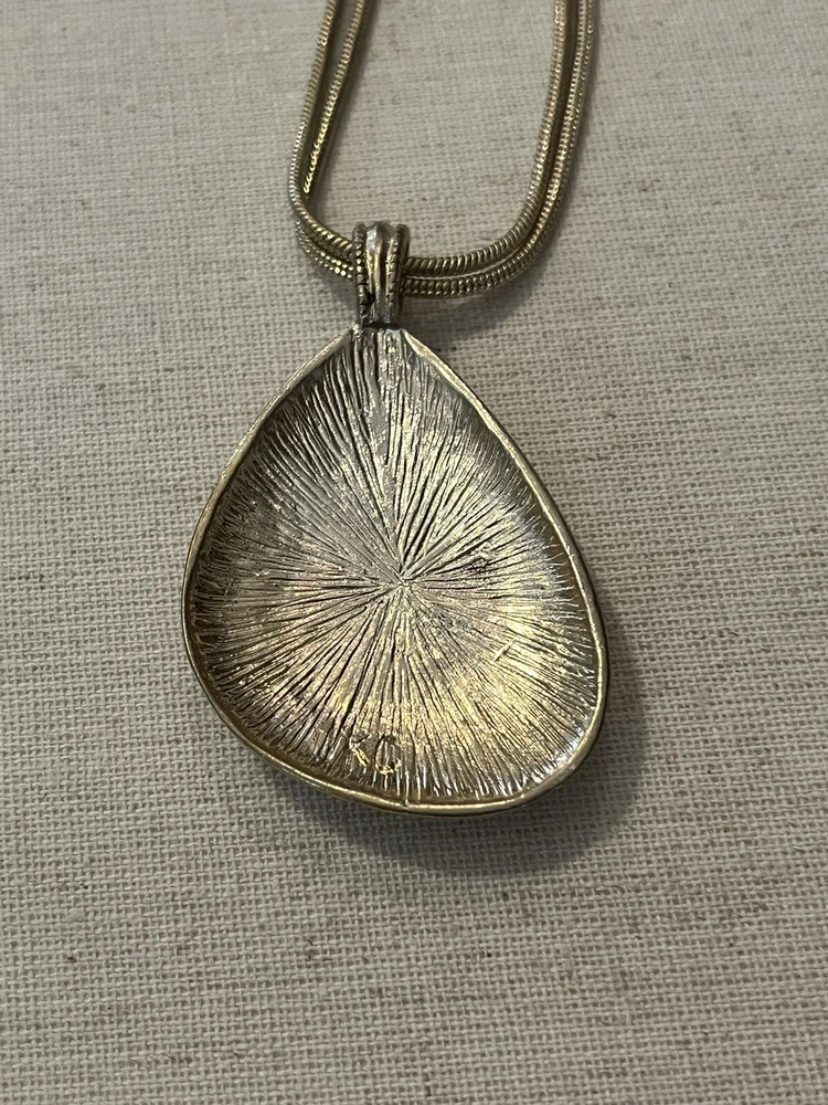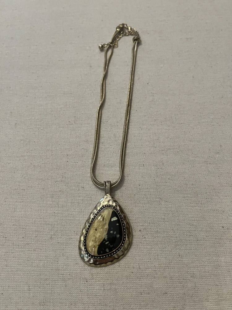 *Kenneth Cole KC Necklace Vintage Gold Tone Resin Stone Gold Flake Hammered