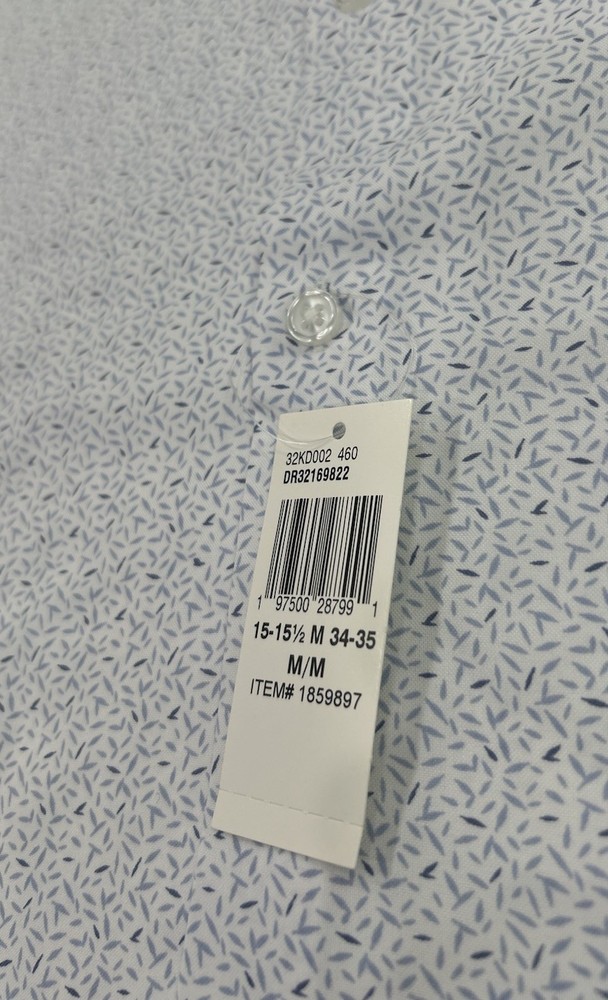 Kenneth Cole Reaction Men's Quick Dry Performance Dress Shirt Size: Medium (15-15.5, 34/35) Color: White / Blue Content: 100% Polyester