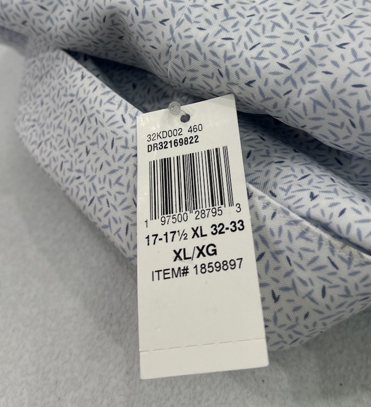 Kenneth Cole Reaction Men's Quick Dry Performance Dress Shirt Size: X-Large (17-17.5, 32/33) Color: White / Blue Content: 100% Polyester
