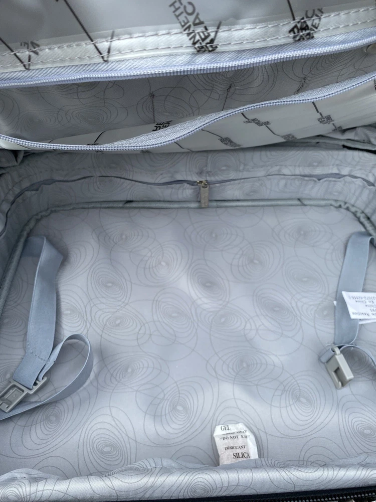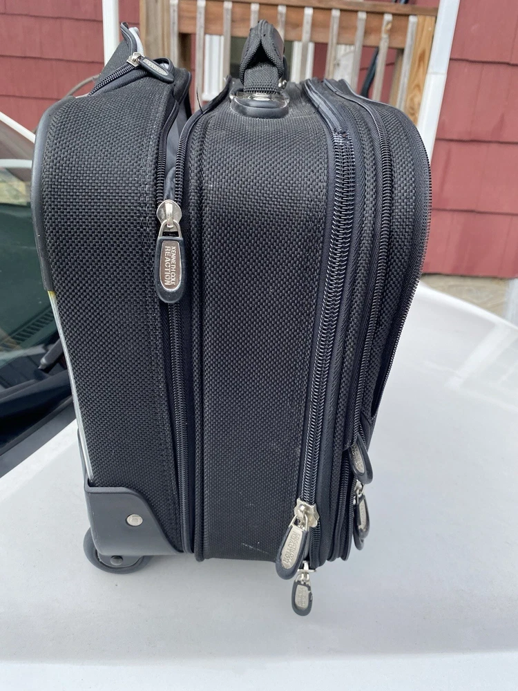 This Kenneth Cole Reaction suitcase is the perfect companion for any business trip or vacation. With a solid black pattern and made of durable nylon material, this unisex adult suitcase is designed with a laptop and tablet compartment, making it easy to carry all your essentials in one place. The suitcase also features wheels for easy rolling and a soft case design for added protection. Measuring 17" X 12" X 7", this carry-on suitcase is the ideal size for any traveler. Whether you're heading to a business meeting or on a leisurely vacation, this Kenneth Cole Reaction suitcase is sure to impress.