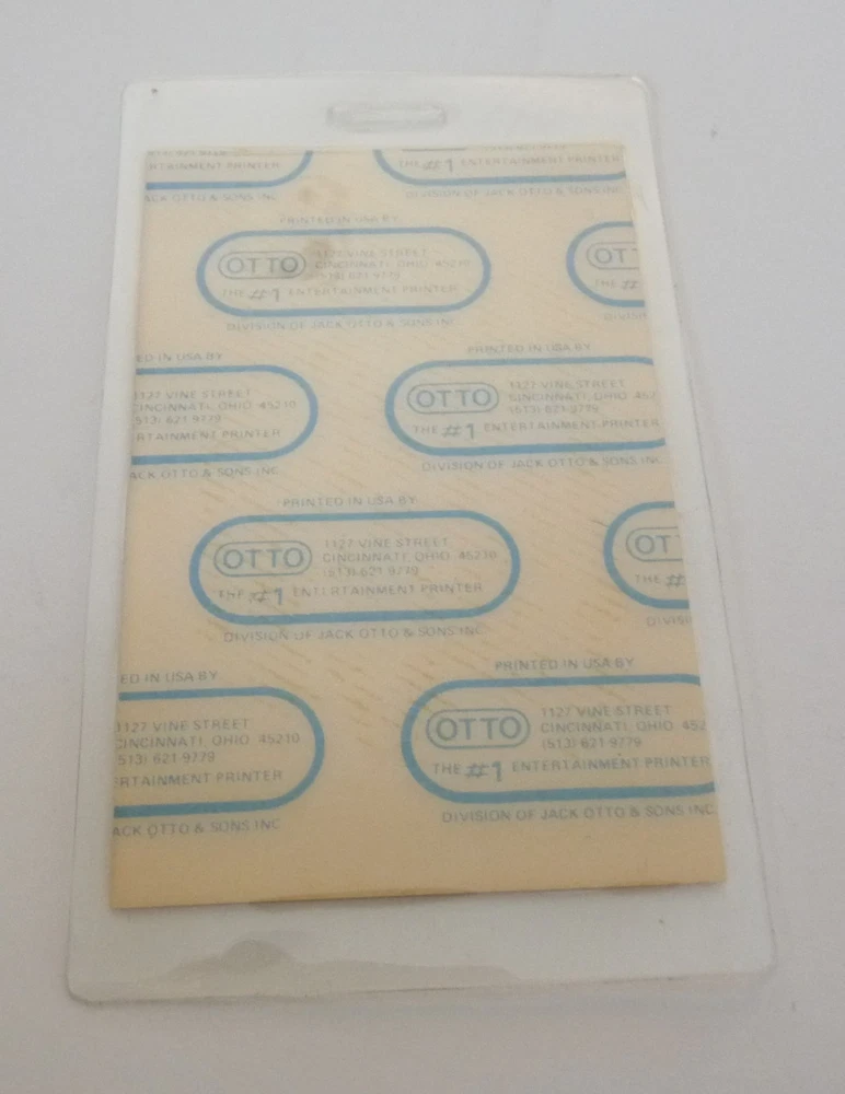 This listing is for a single backstage pass as shown and described above....These came in a large collection of passes from the owner of Otto Passes, David Otto...Otto Passes have been a go to name for artist for more than 40 years.. Please see the attached photo(s) and e-mail me with any questions prior to purchase...Stated shipping is inside the Continental USA. PLEASE NOTE....WE SHIP ON TUESDAYS AND FRIDAYS!!!