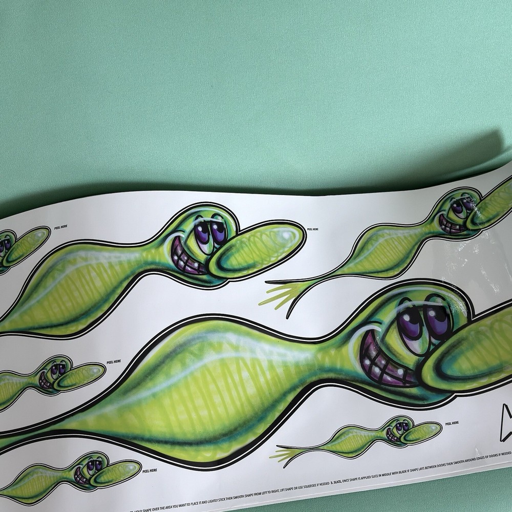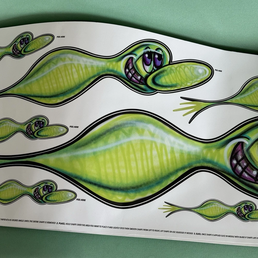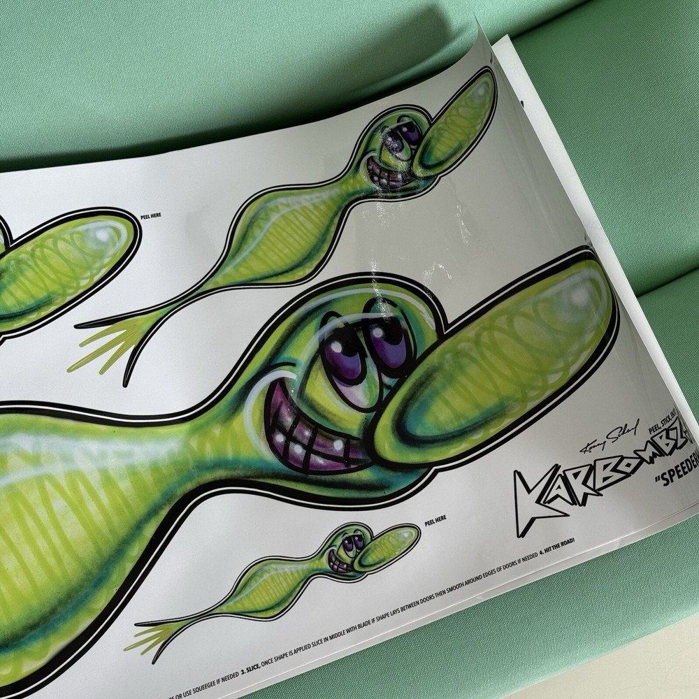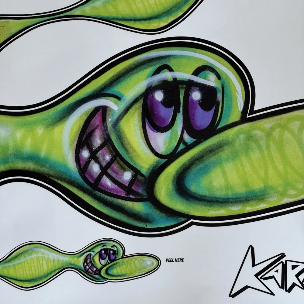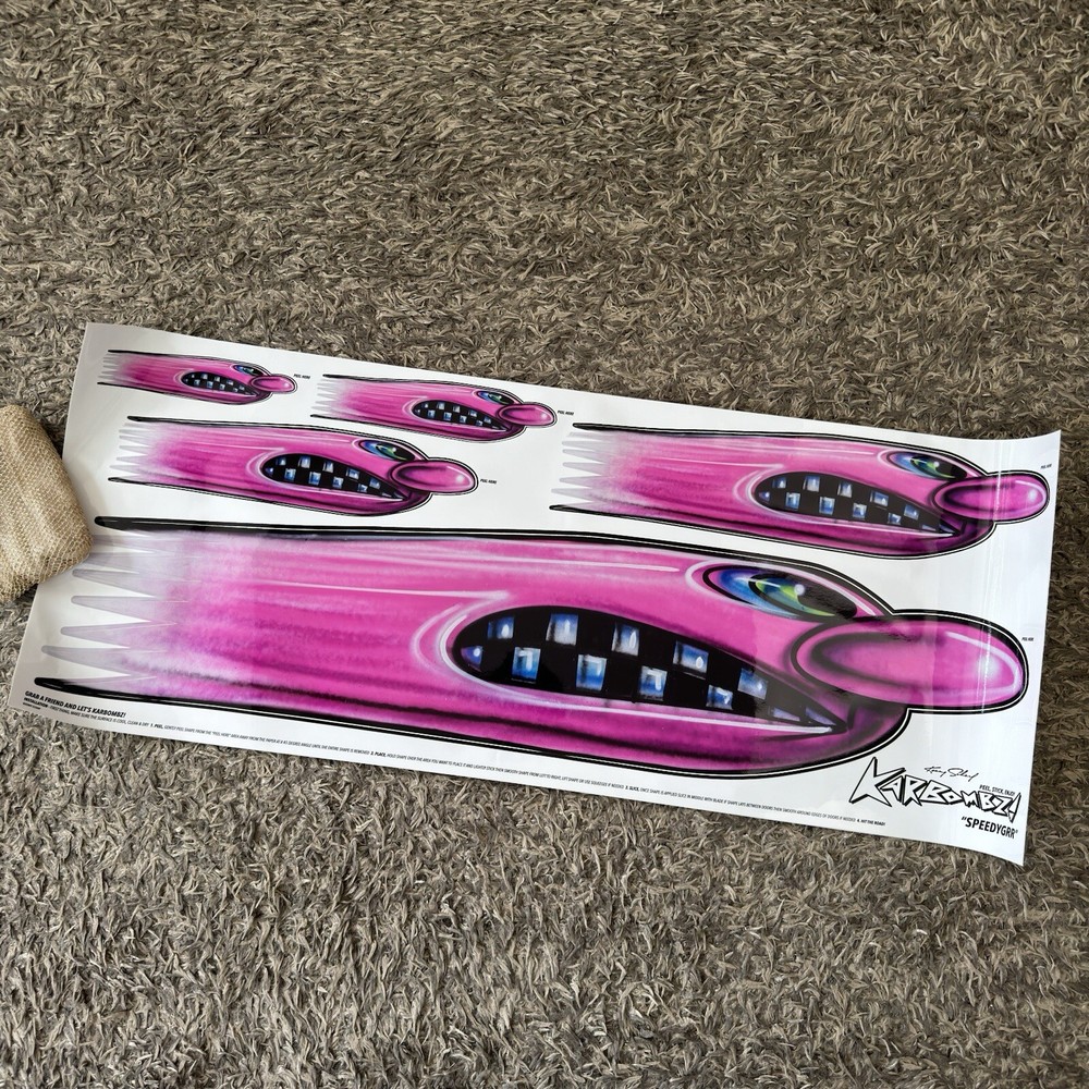 Kenny Scharf Karbombz Decals Large Size: 40“ x 16” • SPEEDYGRR (PINK) • ZIPRRR (PURPLE) • SPEEDERMI (GREEN) We ship worldwide.