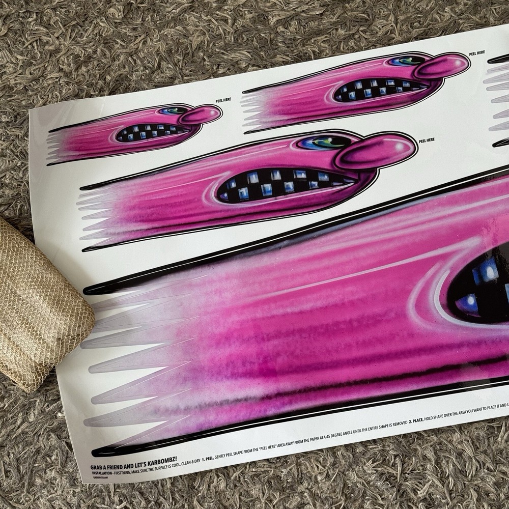 1. These decals are absolutely eye-catching! The vibrant colors—pink, purple, and green—pop on any surface, and the large 40" x 16" size makes a bold statement. Perfect for adding a fun, retro-futuristic vibe to your car or wall. High-quality vinyl ensures durability, and worldwide shipping is a huge plus. Love Kenny Scharf's playful art—these Karbombz totally deliver!
