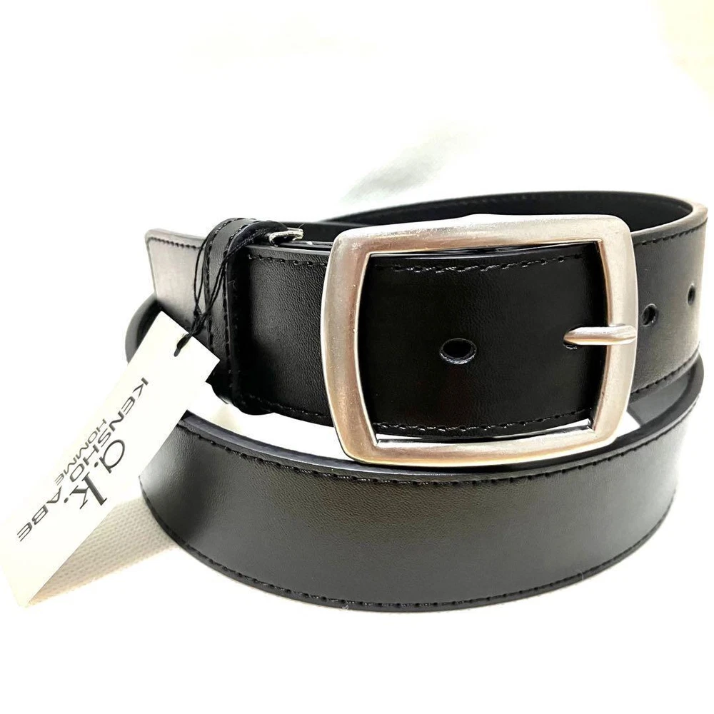Kensho Abe Genuine Leather Men's Belt Black, Pin Buckle, Size Adjustable, New