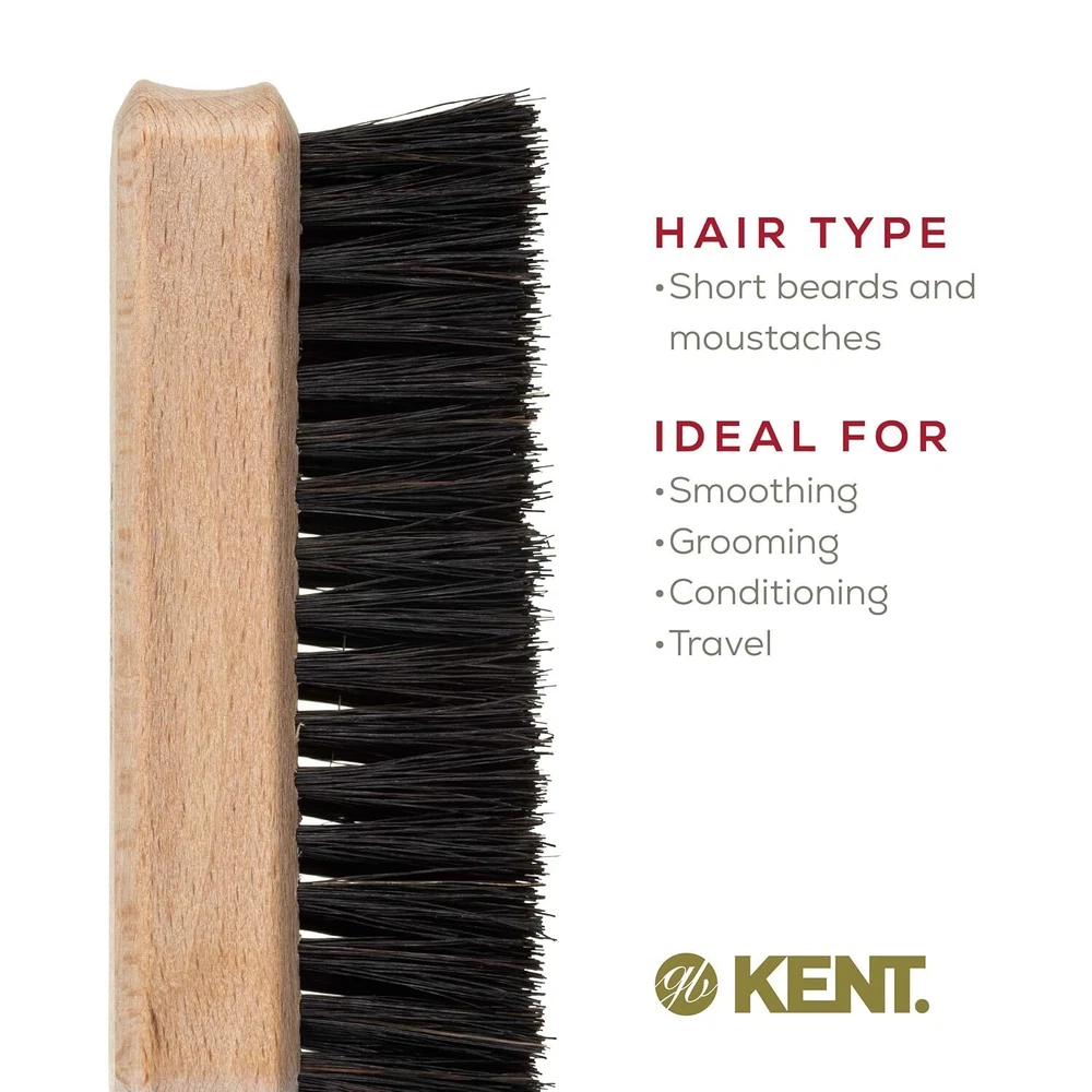 Kent BRD6 Small Travel Men's Beard and Mustache Brush, Natural Boar Bristle for Flawless Shaping and Grooming. Ergonomic Grip Wood Handle. Dry or Wet Beard, Distributes Oils and Balms. Made in England