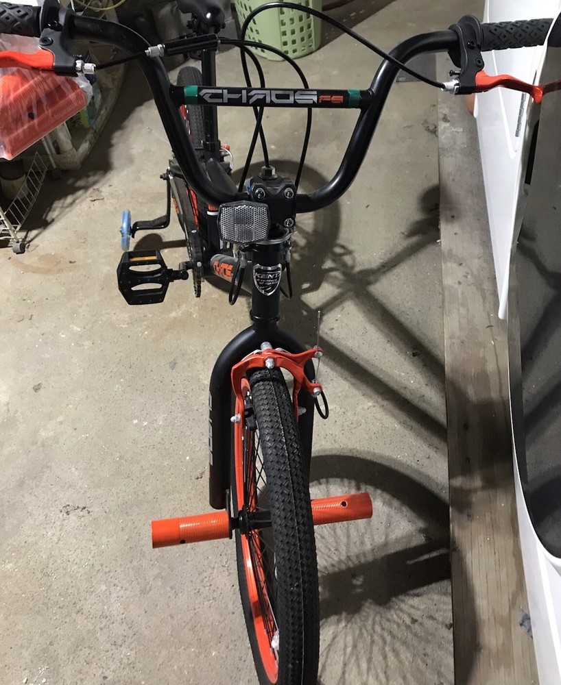 Get ready to ride the streets in style with the Kent Chaos Freestyle 20” Bike! This unisex kids’ bicycle features a multicolor chrome, steel, and alloy frame with 2 caliper brakes for safety. The bike includes training wheels for beginners and has 1 speed with no suspension. The Kent Chaos bike is perfect for freestyle riders and has a wheel size of 20 inches. The bike’s dimensions are 56” in length, 28” in width, and 37” in height. This unit comes with a manufacturer warranty of 0 and is custom-built. Purchase this bike today for an exciting new ride!