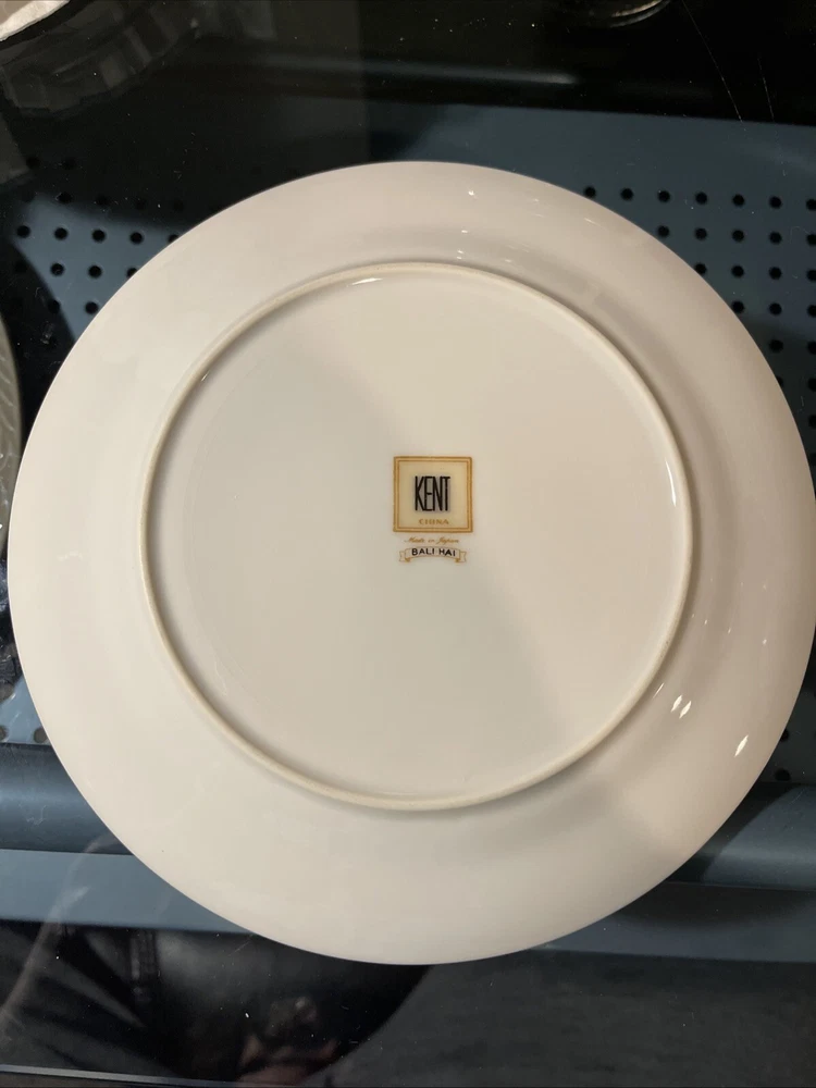 This twelve-piece set of Kent China Bali Hai salad plates features a beautiful bamboo pattern with flower accents. Each plate measures 7.5 inches in diameter and is made of glossy porcelain material. The plates are stackable and perfect for all occasions, whether for everyday use or special events. The plates are originally from China and have a vintage look and feel. They are perfect for those who love the Bali brand and appreciate the intricate details of their dishes. The plates weigh 5 pounds and come with no manufacturer warranty. Get ready to enjoy your meals with these elegant and high-quality salad plates.