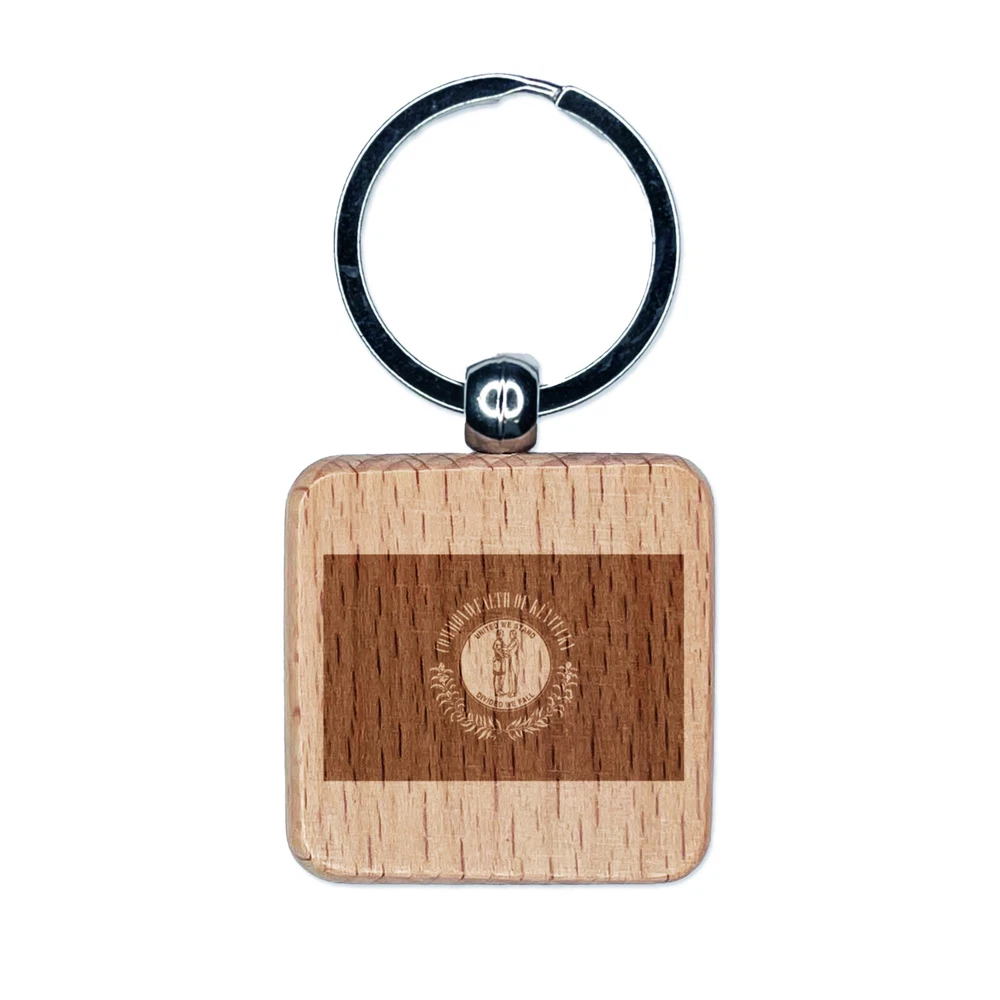 Kentucky State Flag Engraved Wood Square Keychain Tag Charm