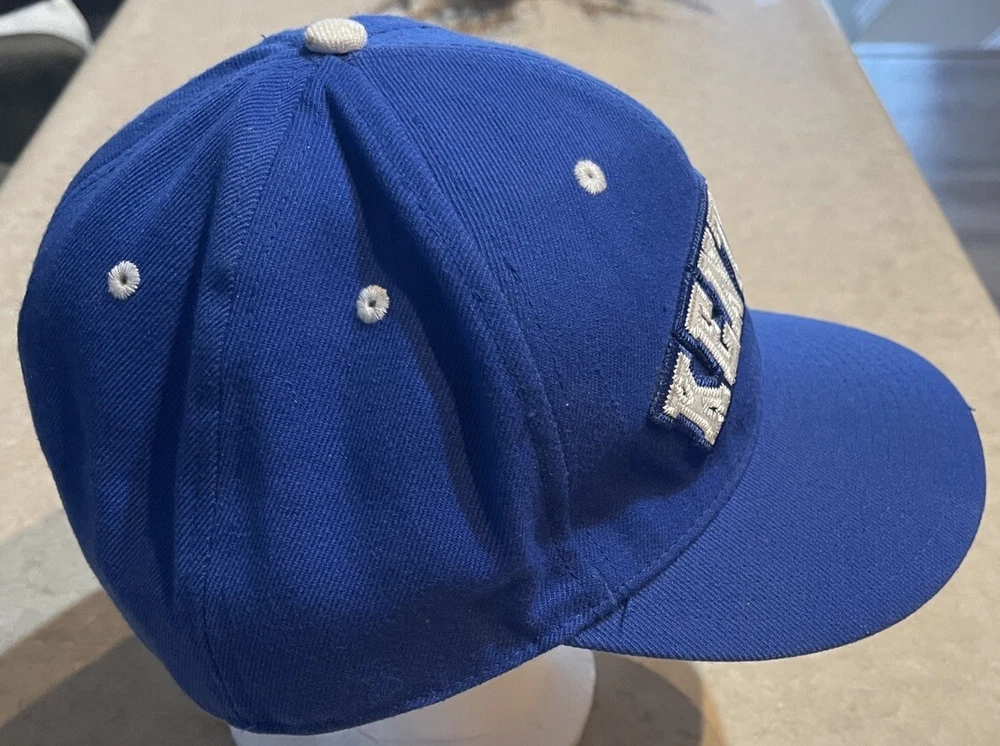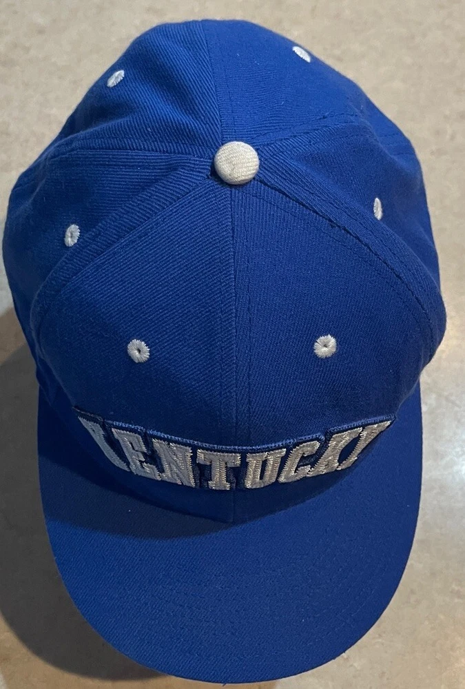 Show off your love for the Kentucky Wildcats with this Nike fitted hat cap. The blue cap features an embroidered design with the team's logo and name, making it the perfect accessory for any fan. It's officially licensed and made from high-quality materials, ensuring that it will last for years to come. This cap is perfect for basketball fans, especially those who support the Kentucky Wildcats. It's designed for men and comes in size 8, making it a great gift for any fan. The hat is perfect for regular season games and is sure to turn heads during the NCAA Tournament. Get yours today and show off your love for the Kentucky Wildcats! This hat is in worn preowned condition with some staining on the inside brim of the hat. Please see ALL photos for a better idea on condition, and any details to the hat.