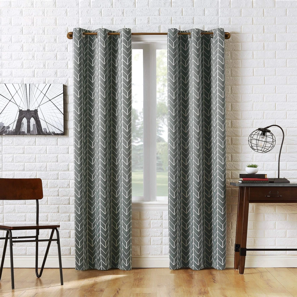 Chevron geometric design adds sophistication to any room of your home Thermal properties help keep summer heat and winter chill out of your home Blackout technology blocks out most unwanted light while enhancing privacy