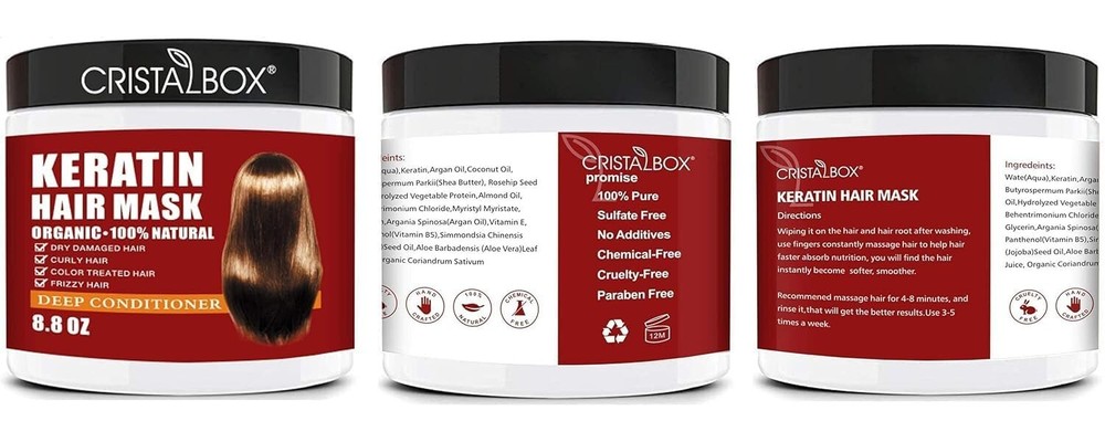 Keratin Hair Mask, Keratin Hair Treatment 250g Hair Mask for Dry Damaged Hair, Hair Treatment Mask Deep Repair Damage Hair Root, Natural Deep Conditioner Hydrating Hair Masque About this item Deep Conditioning Repairs for Dry Damage Hair:Our Repairing hair mask is a perfect treatment for dry and damaged hair which damaged by bleaching, coloring, and heat styling. Advanced hair repair system and specially formulated to enhance the texture, softness,manageability, shine, and provide additional damage restoration. hair mask provides an intensive moisture treatment to turn dry, dull hair into lustrous, and shining locks Keratin Hair Mask:Deep Conditioning Treatment Hair Mask. It replenishes hair nutrients and adds protection to the cuticle to boosts hair’s overall health.Also reverses the effect of environmental stressors like sun damage, UV exposure, chlorine and salt-water from swimming and constant damage caused by years. Deeply conditions, detangles, hydrates, and revives dull and dry hair improving its manageability and elasticity and giving it a beautiful shine Natural Botanical Ingredients: Rich in shea butter, coconut oil ,argan oil and aloe vera extractto protect hair from damage, promote hair growth, deeply moisturize hair, and repair damaged hair scales.It penetrate and hydrates deeply, leaving you feeling silky, never greasy or sticky Deep Moisturizing Hydrating Treatment Hair:Ultra Moisturizing Pro Hydrating Nourishment Boost for Healthy Mane. Repairing Spa Like After Care Strengthens Bleached & Colored Hair. Scalp & Roots Reviver Suitable Hair Type: The hydrating hair mask is specially formulated to treat extra-dry, damaged, over-processed and color-treated hair. Dry and sensitive hair should use moisturizing hair care products with high protein. If it is extremely chaotic, dry hair, you can use the hair mask to deeply nourish the hair that is damaged and difficult to maintain, so that it can be shiny, and smooth, our hair mask is great for dry hair