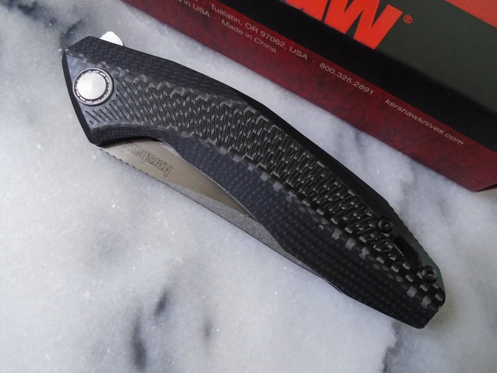 7.50 inches open 3.60 inch KVT ball bearing pivot open D2 tool steel blade. G10 and carbon fiber handle, 2 way pocket clip, Sub liner lock, Lanyard hole, 2.70 ounces. Very nice!! FOR MULTIPLE ITEM PURCHASES I DO COMBINE SHIPPING BY WEIGHT TO SAVE YOU MONEY ON SHIPPING EXEPT WHEN SHIPPING IS ALREADY FREE. IF YOUR COMBINING SHIPPING ON UNPAID AUCTIONS PLEASE EMAIL ME AND LET ME KNOW. IF THERE IS EVER A PROBLEM WITH AN ITEM YOU RECEIVE FROM ME AND YOU FEEL LIKE LEAVING NEGATIVE FEEDBACK DONT DO IT!!!! CONTACT ME FIRST AND I WILL FIX IT ANY WAY I CAN I PROMISE!! CHECK OUT MY OTHER ITEMS BY CLICKING ON MY STORE DOOR OR SEE OTHER ITEMS UP ABOVE ON THIS PAGE. Track Page Views With Auctiva's Counter