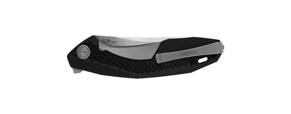 Overall Length: 7.4 in. (18.7 cm) Closed Length: 4.5 in. (11.4 cm) Blade Length: 3.25 in. (8.3 cm) Blade Material: D2 Stonewashed Finish Handle Material: Black G10, Carbon Fiber Inlay Flipper KVT Ball Bearing Manual Sub-Frame Lock Reversible Deep Carry Tip-Up Pocket Clip Ambidextrous Carry Lanyard Hole Decorative Pivot Cap Designed by Dmitry Sinkevich Weight: 2.6 oz. (75 g)