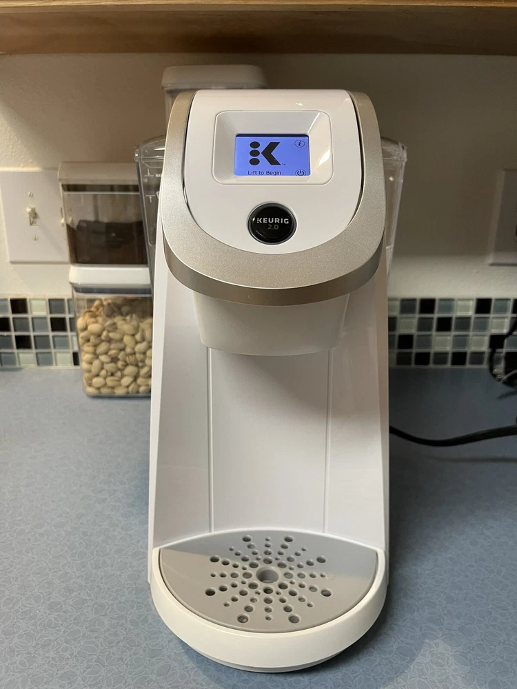 Used Keurig 2.0 in white. It has been cleaned with vinegar. It’s pretty basic but it works if you want to use it for k-cups or for hot water.