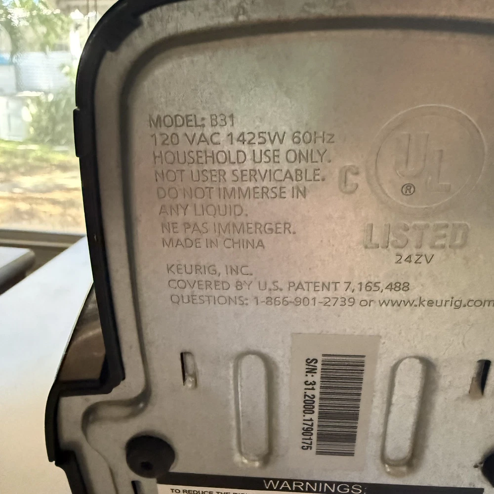 Water Tank Capacity: 1 qt Finish: Matte Features: Auto Shut-off, Built-in Water Filter, Cord Storage, Display, Energy Saving Mode, Hot Water Tap, Permanent Filter, Removable Drip Tray, Removable Water Tank, Travel, Water Tank Type of Coffee Made: Espresso Material: Plastic Bar Pressure: 8 bar Heat up Time: 60-65 sec Brand: Keurig Power Source: Electrical Item Height: 11 in Number of Settings/Programs: Coffee Maker Coffee Type: Pod Type: Pod Coffee Machine Color: Black Bean/Coffee Capacity: 8 oz Model: B31 Control Panel: Analog MPN: 118224