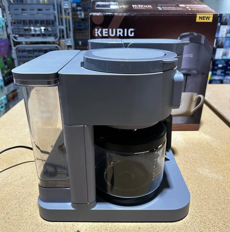 Keurig K-Duo Essentials Hot & Iced Single-Serve + Carafe Coffee Maker – Moonlight Grey The Keurig K-Duo Essentials is the perfect all-in-one coffee solution for any home. Brew a single cup with your favorite K-Cup pod or make a full 12-cup carafe for family and guests — all with one compact machine. This model also features Hot & Iced brewing , letting you enjoy both hot coffee and refreshing iced drinks with ease. Key Features ✔ 2-in-1 Coffee Maker (Single-Serve + Carafe) Brew a single cup using any K-Cup pod Brew a full 12-cup carafe using ground coffee Perfect for both individual use and families ✔ Hot & Iced Brewing Brew hot coffee Brew over ice without watering down the flavor ✔ Large 60 oz Shared Water Reservoir One reservoir for both single-serve and carafe Fewer refills, more convenience ✔ Three Brew Sizes Single-serve: 8 oz, 10 oz, 12 oz Carafe: multiple brew amounts ✔ Programmable Carafe Auto-Brew Set it the night before Coffee ready exactly when you need it ✔ Pause & Pour Temporarily pause mid-brew Pour a cup before the cycle finishes ✔ Strong Brew Compatibility Works with all standard Keurig K-Cup pods Works with ground coffee for carafe brewing Specifications Model: Keurig K-Duo Essentials Color: Moonlight Grey Functions: Single-serve, carafe, hot & iced Carafe Size: 12 cups (glass carafe) Water Reservoir: 60 oz Pod Type: K-Cup pods (single-serve) Dimensions: Countertop-friendly compact footprint Power: 120V standard plug What’s Included Keurig K-Duo Essentials Coffee Maker 12-cup glass carafe Removable water reservoir Drip tray