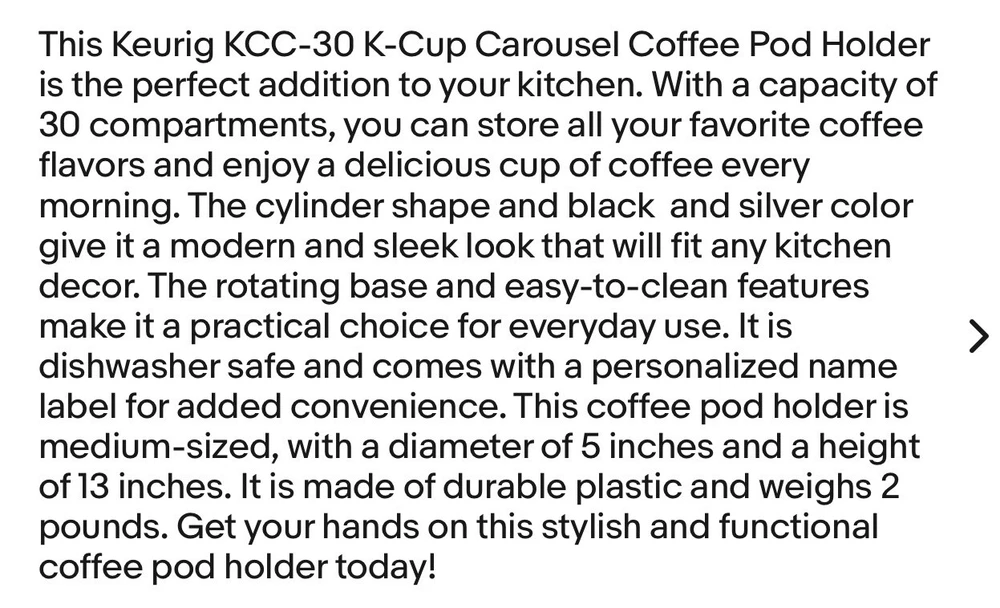 Keurig KCC-30 K-Cup Carousel Coffee 30 Pod Holder Silver Black Spinning