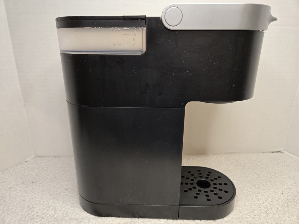 Keurig mini is in good used condition and was closely inspected, washed, cleaned and tested. See pictures for full details! Introducing the Keurig K-Mini Single Serve Coffee Maker in Black. This compact coffee maker has a water tank capacity of 12 oz and a bean/coffee capacity of 12 oz. It is compatible with Aquaclean water filtration and Capsule/Pad systems from Cafissimo and Nespresso. With a heat up time of 60-65 seconds, you can enjoy your favorite coffee type which includes Espresso Macchiato, Espresso, Latte Macchiato, Mocha, Hot Milk, and Cappuccino. This coffee maker comes with additional features such as an analog control panel, auto shut-off, water tank, cord storage, display, and an additional coffee container. It also includes a removable drip tray and is made of plastic material. The Keurig K-Mini Single Serve Coffee Maker is perfect for small kitchens and is designed to be user-friendly.