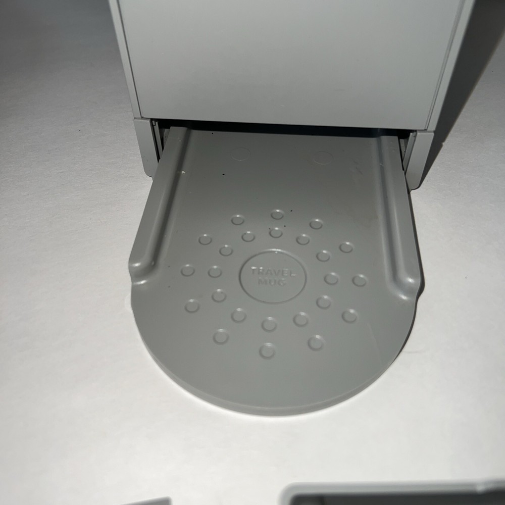 Introducing the Keurig K-Mini Coffee Maker, the perfect addition to your kitchen. This compact coffee brewer has a gray color and is made of durable plastic material. It is compatible with Capsule/Pad systems from Cafissimo and Nespresso, allowing you to enjoy a variety of coffee types. With a power source of wall plug-in and a power of 1470W, this coffee maker is easy to use and operates quickly. It has a capsule/pod capacity of 1 and a bean/coffee capacity that varies. The K-Mini also features an auto shut-off function, a removable drip tray, and a removable water tank for easy cleaning. This coffee maker is perfect for those who want a quick and easy cup of coffee without the hassle. Barely used.